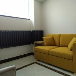 High ceilings and mirrored accents elevate this luminous lounge into a statement of modern elegance.
