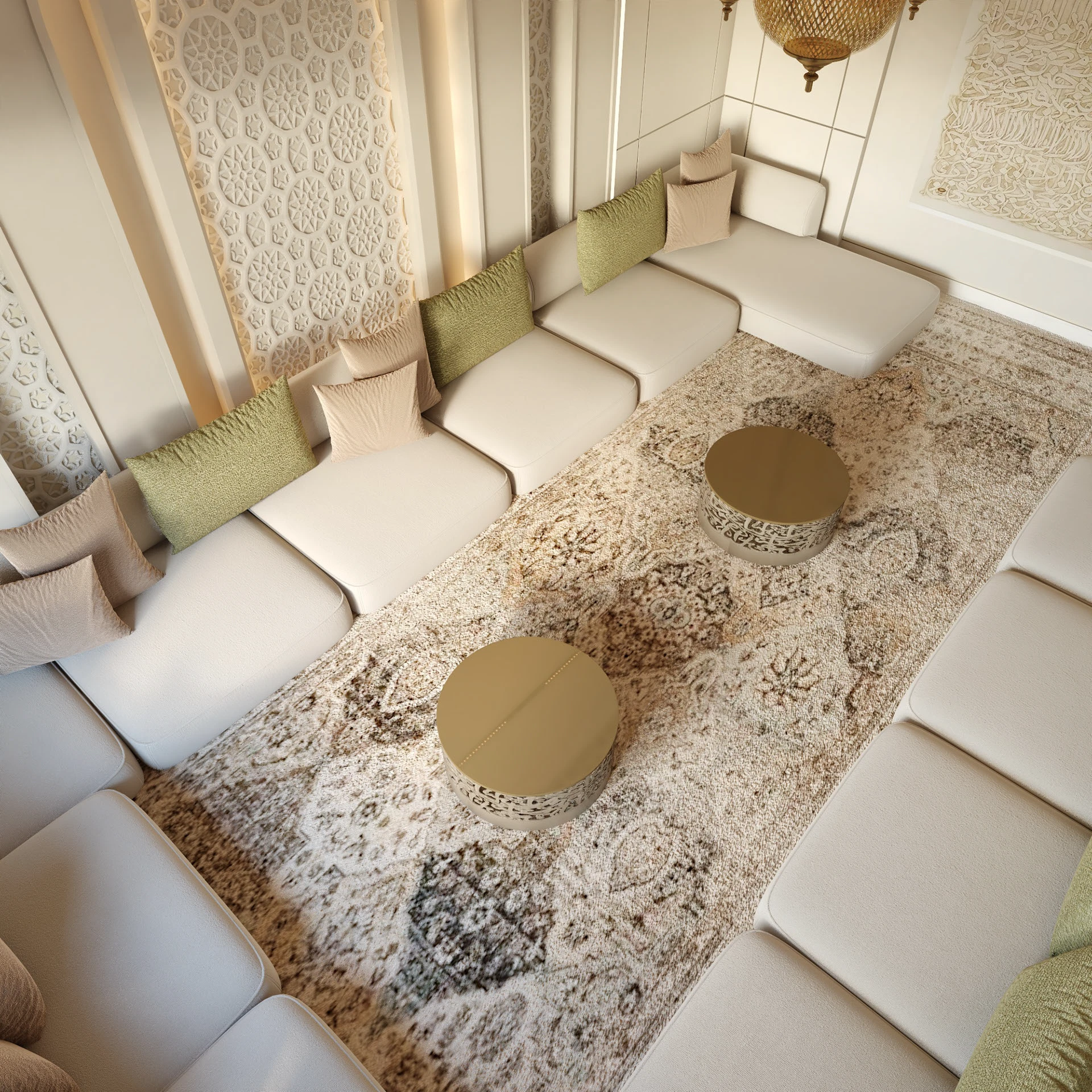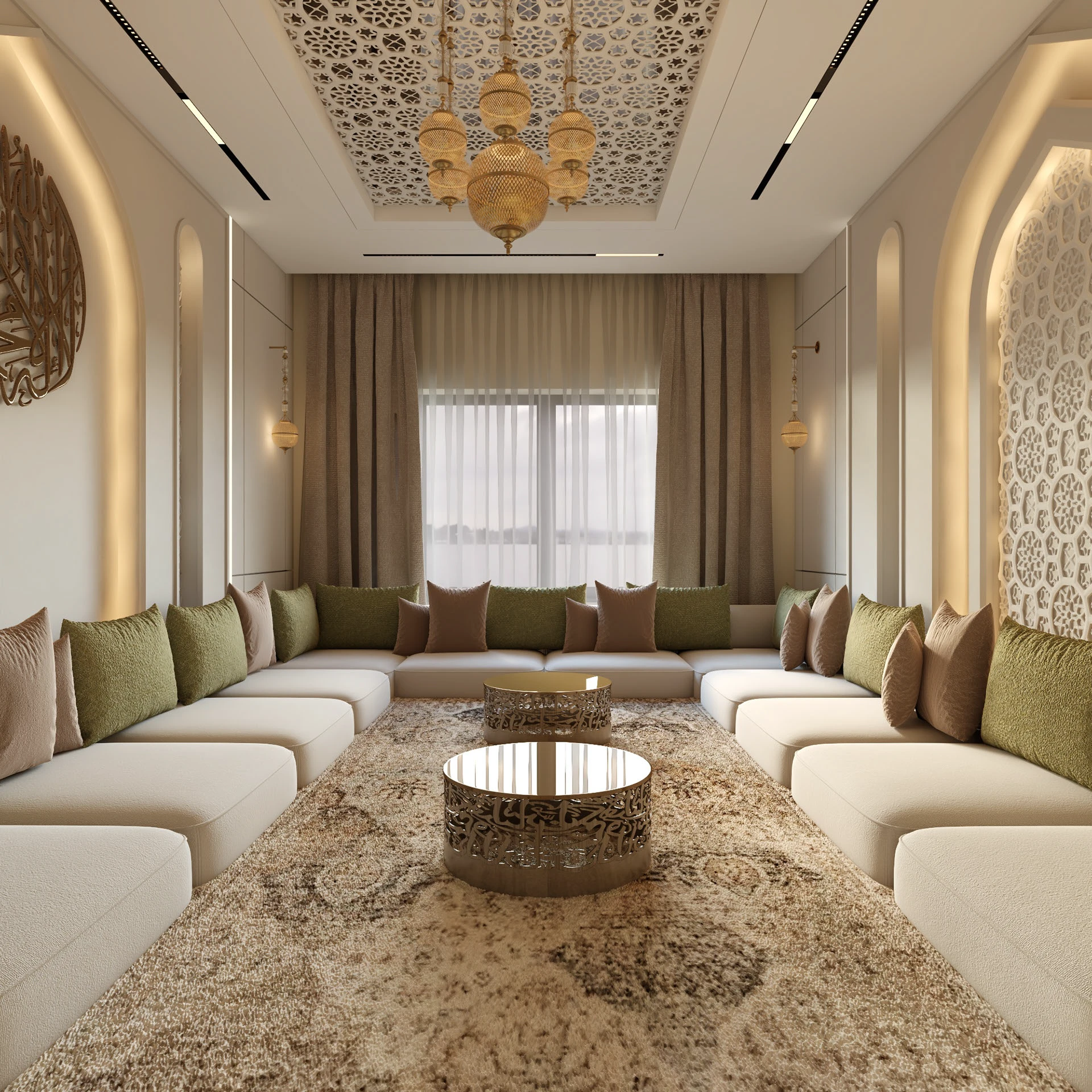 The L‑Shaped Sectional Sofa is designed to combine comfort, cultural elegance, and modern functionality. Upholstered in soft beige fabric, it anchors your living space with clean lines and a welcoming texture. Its versatile design makes it the perfect centerpiece for family living rooms, studio apartments, or open‑plan spaces where style and relaxation meet.