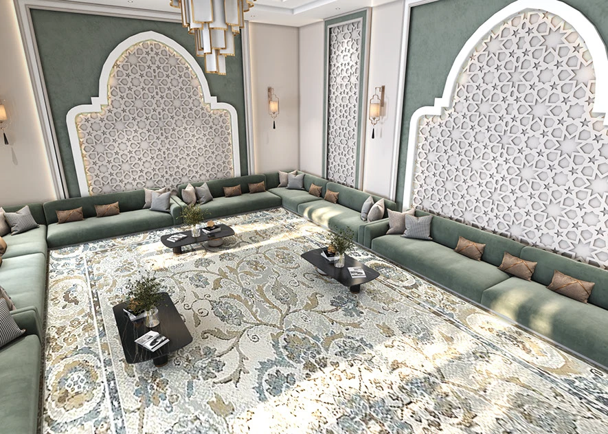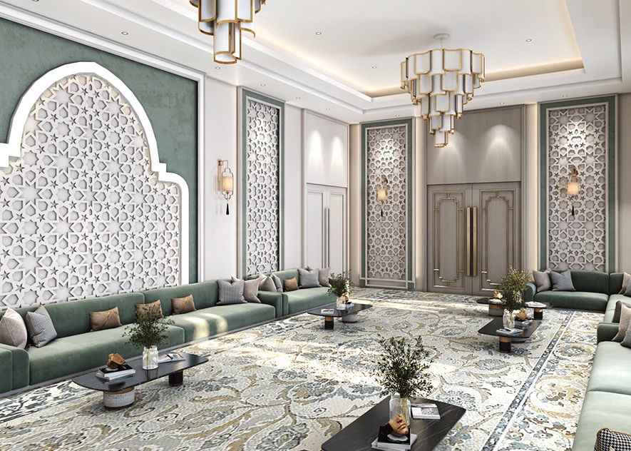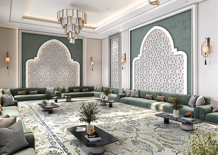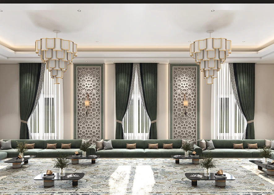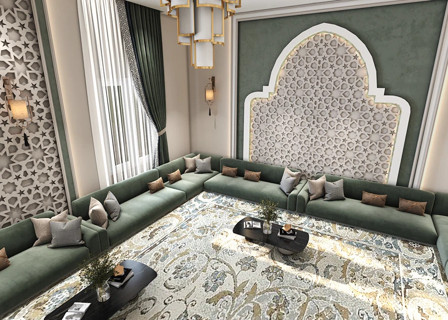 تأتي صوفا مجلس هارموني ، مكسوة بقماش فاخر باللون الأخضر الزمردي لتضفلوا لمسة من الأناقة على جلساتكم. المقاعد المريحة مزودة بوسائد بألوان ترابية مثل البيج، والرمادي الفاتح، والفحمي، مما يمنح عمقاً بصرياً ودعماً مريحاً مثالية لغرف المعيشة الكبيرة أو المجالس التقليدية، حيث تجمع بين كرم الضيافة العربي الكلاسيكي واللمسات العصرية الراقية.