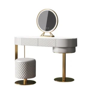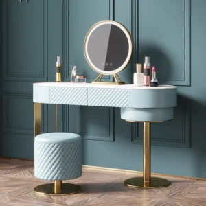 This Amazing Vanity in Blue-White contrast gives a moonlight vibe in the room. The product has decent drawers space and it’s very space-friendly. The superiority lies in the quality of the stainless steel used for the base of the product. The product comes with a comfortable seat that’s padded and patterned from the sides.