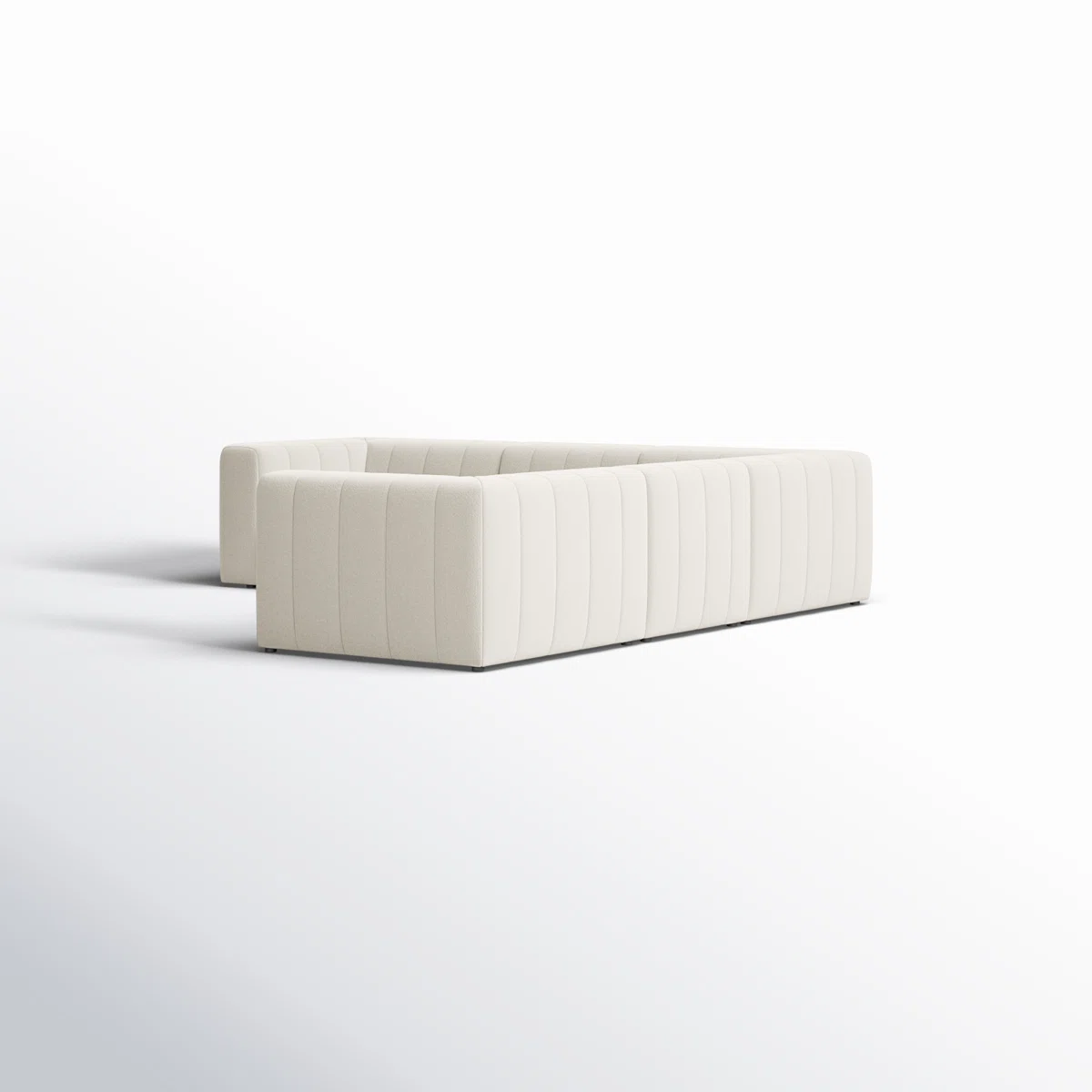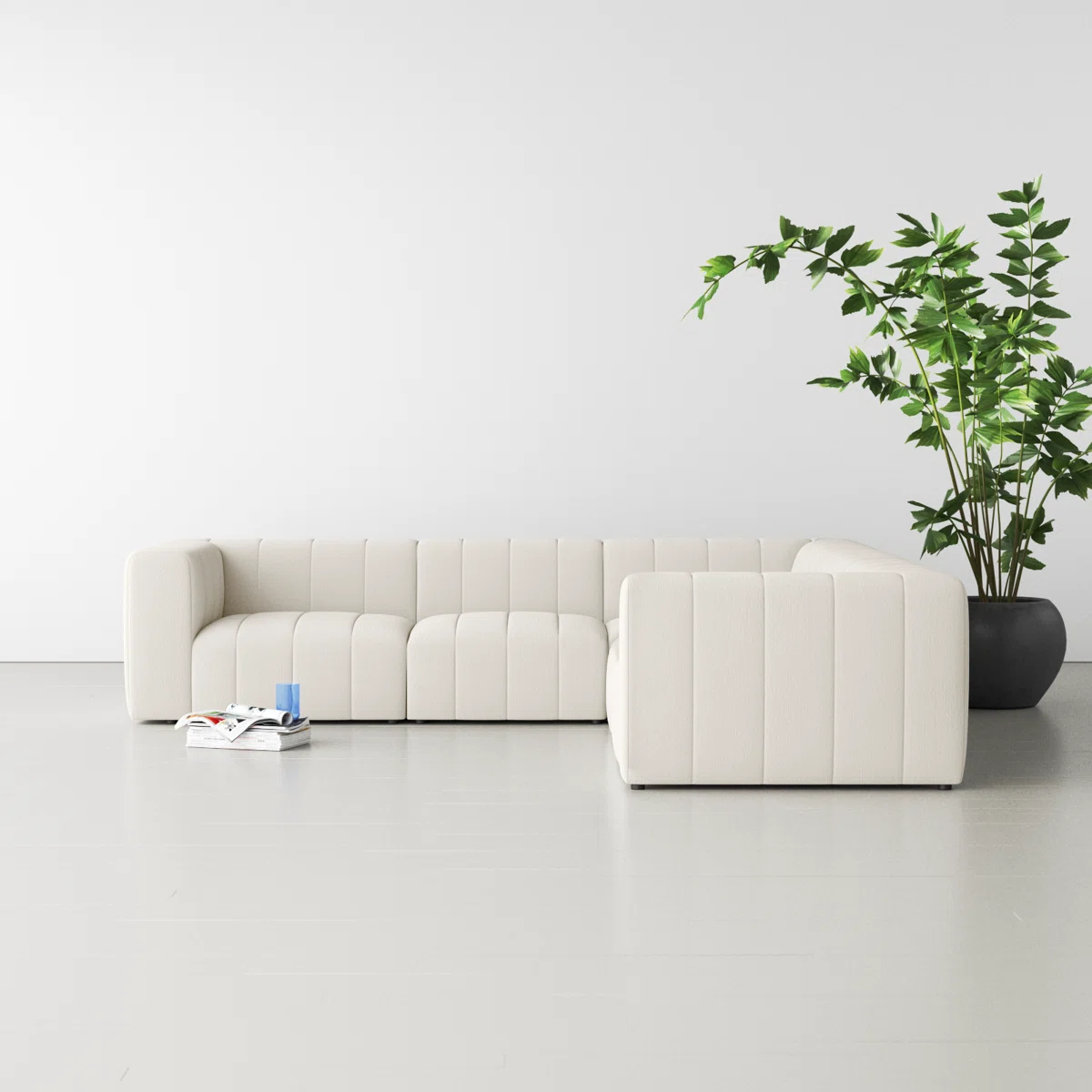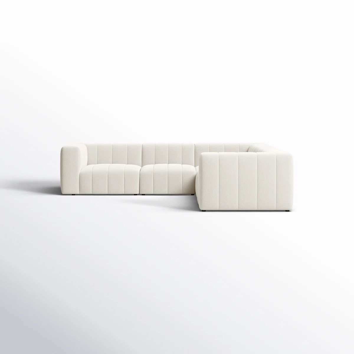 Inspired by Italian modern designs, this five-piece sectional showcases a bold tight-seat silhouette accented by wide channel tufting – good luck losing the remote. Stain-resistant neutral upholstery delivers stress-free snacking, while a chaise offers space to stretch out during streaming sessions.