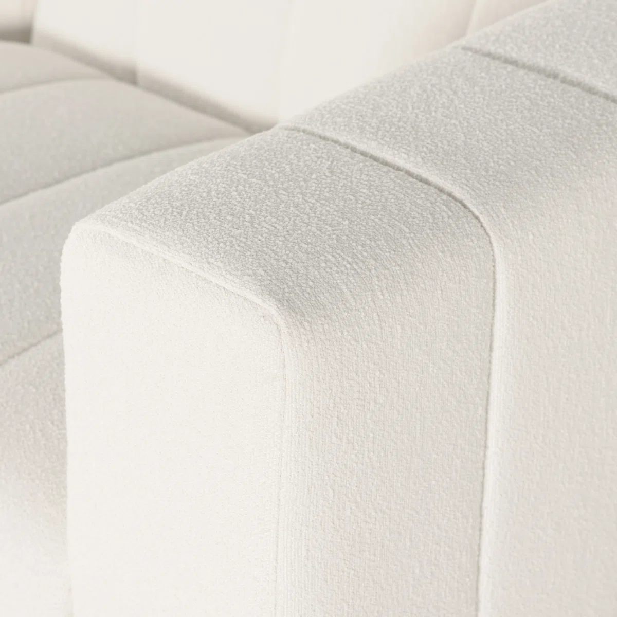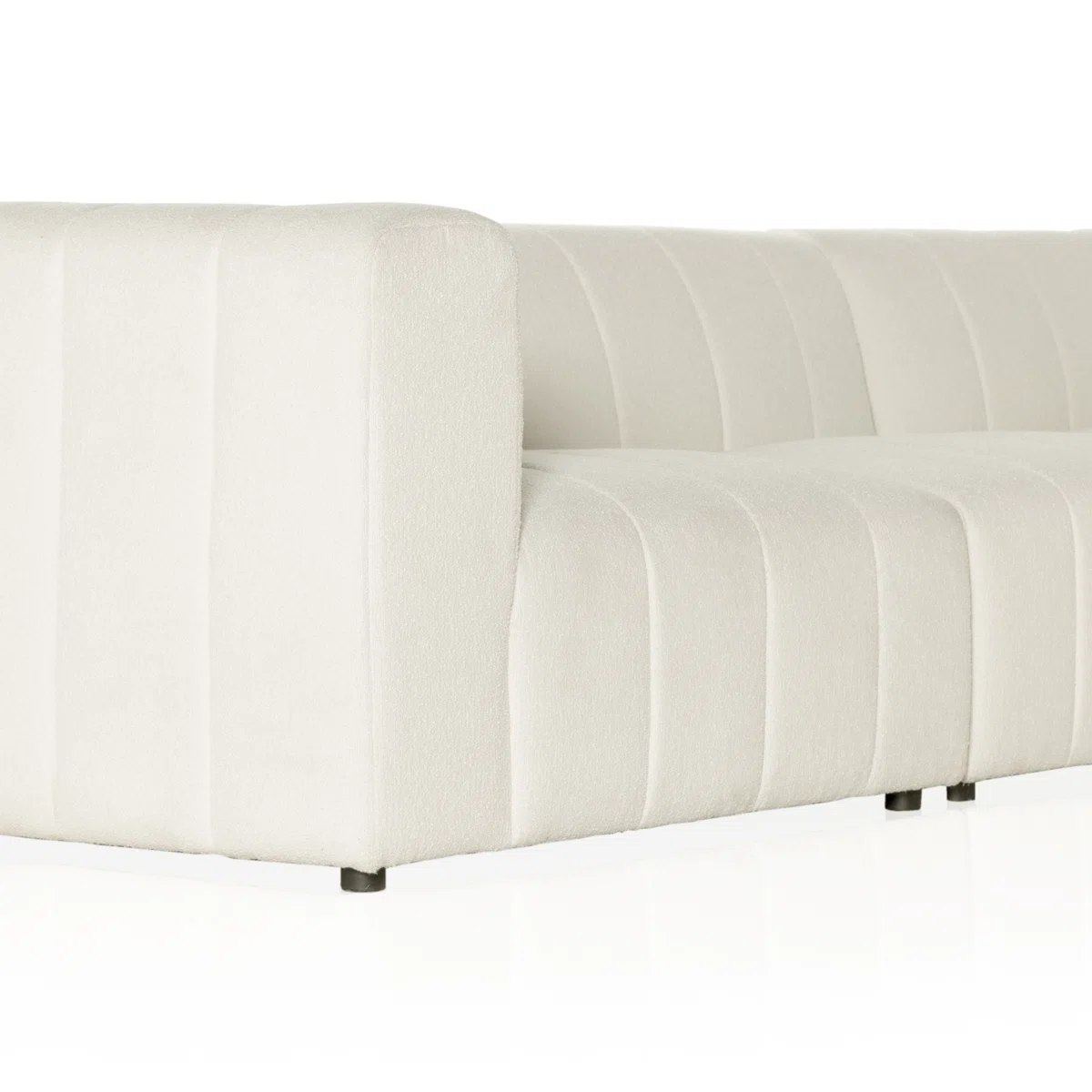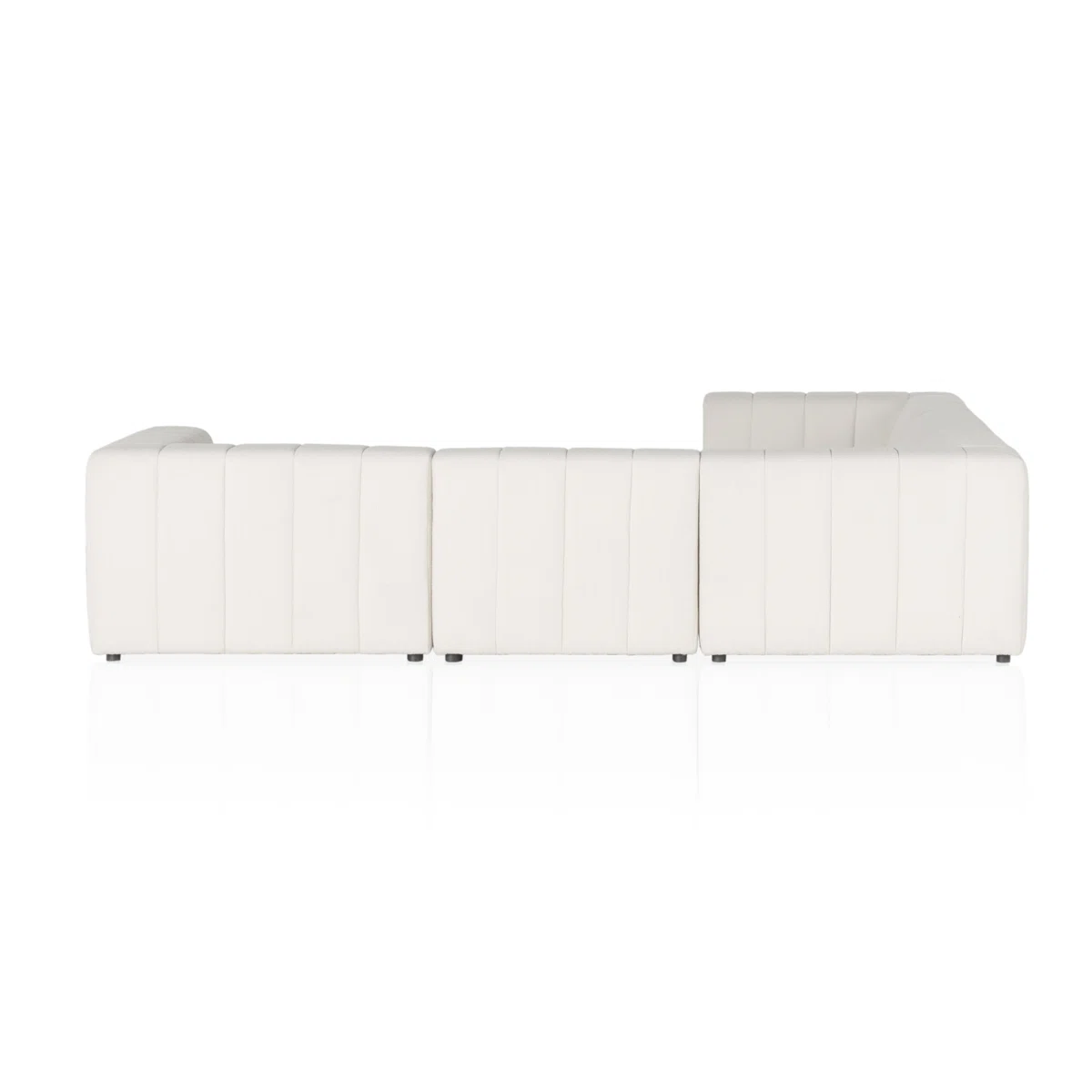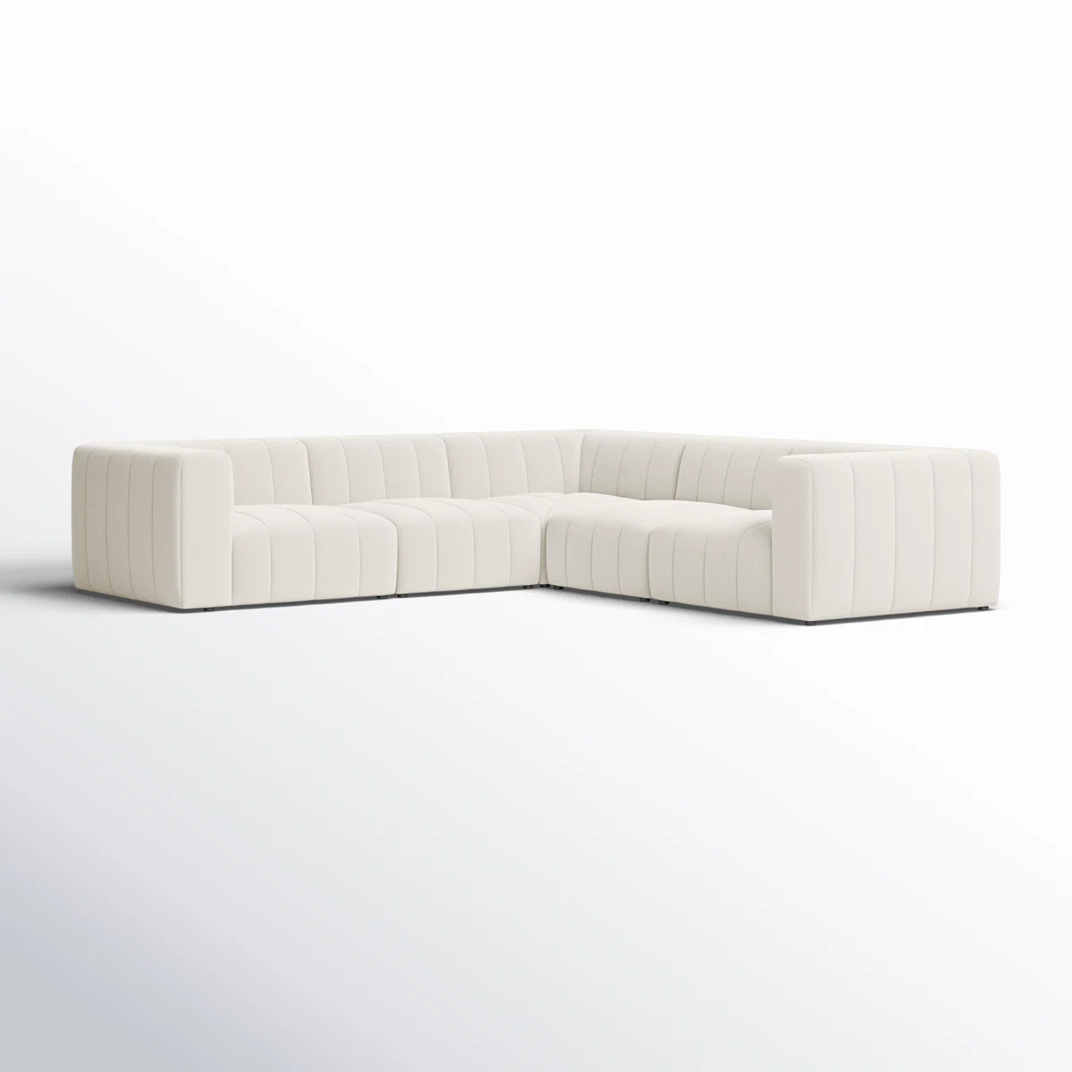Inspired by Italian modern designs, this five-piece sectional showcases a bold tight-seat silhouette accented by wide channel tufting – good luck losing the remote. Stain-resistant neutral upholstery delivers stress-free snacking, while a chaise offers space to stretch out during streaming sessions.