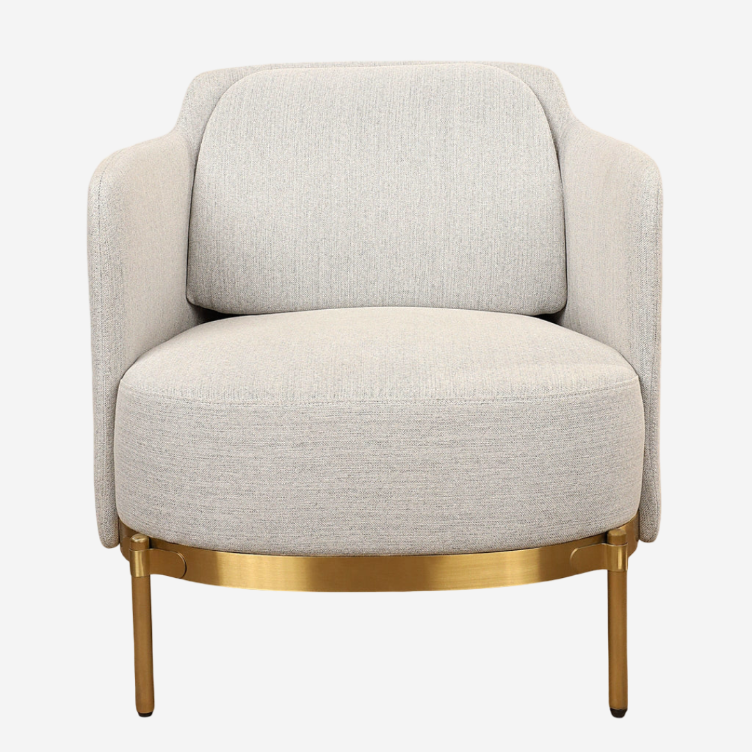 A sculptural seat with a luxe chrome gold stainless steel frame and cozy bouclé upholstery. Measuring 75 × 70 × 70 cm, it combines compact elegance with plush comfort. The curved silhouette and textured fabric offer warmth and style, while the gleaming base adds architectural flair. Ideal for reading nooks, lounges, or gallery-inspired spaces.