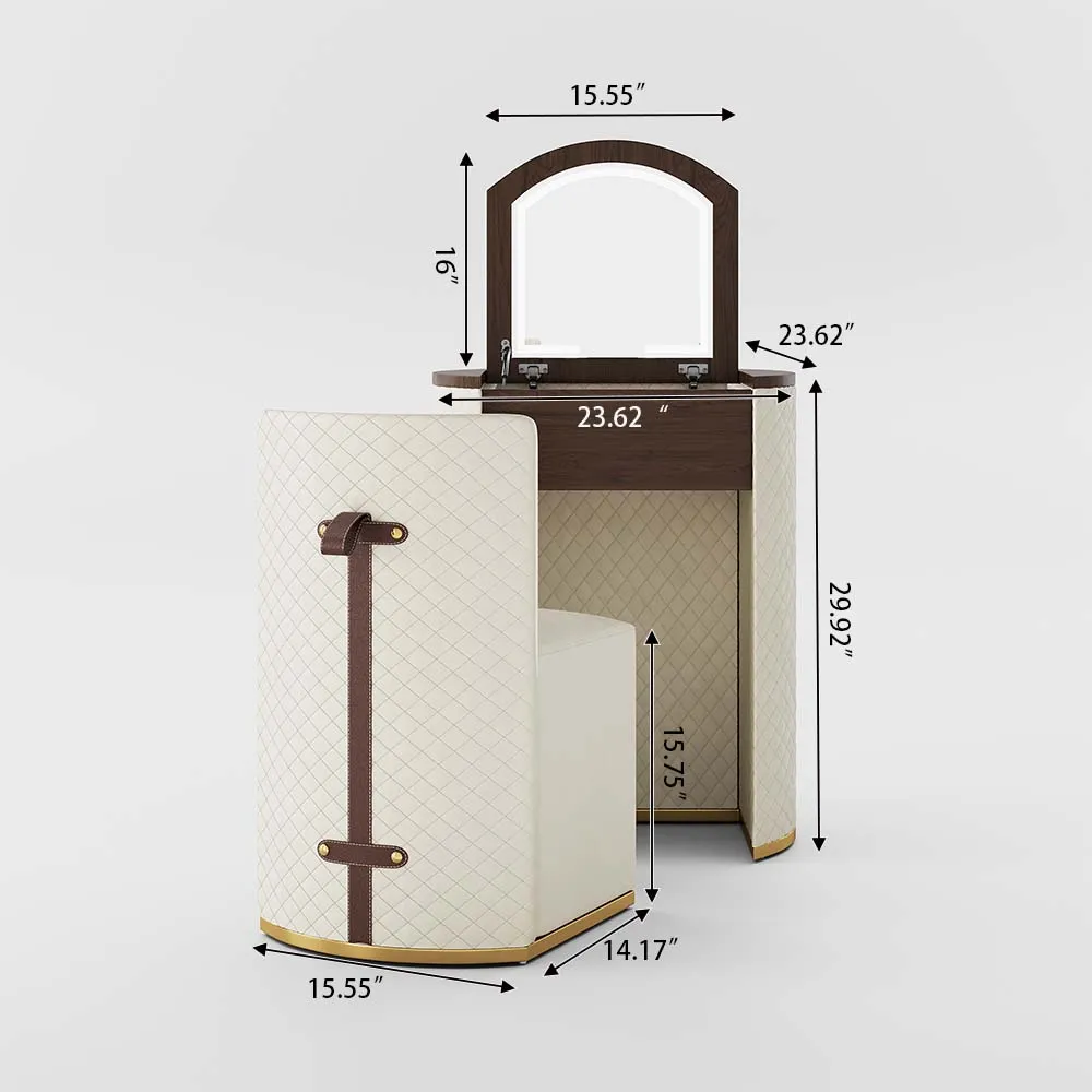 Perfect for small bedrooms, studio apartments, or dressing corners, the Classy Vanity Set maximizes space without compromising on style. The multi-layer solid wood plywood frame ensures long-lasting durability, while the faux leather detailing adds a soft, refined touch to the overall design.