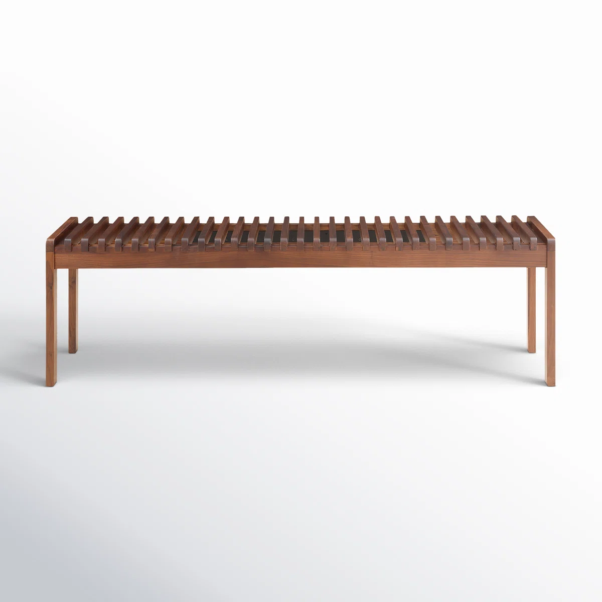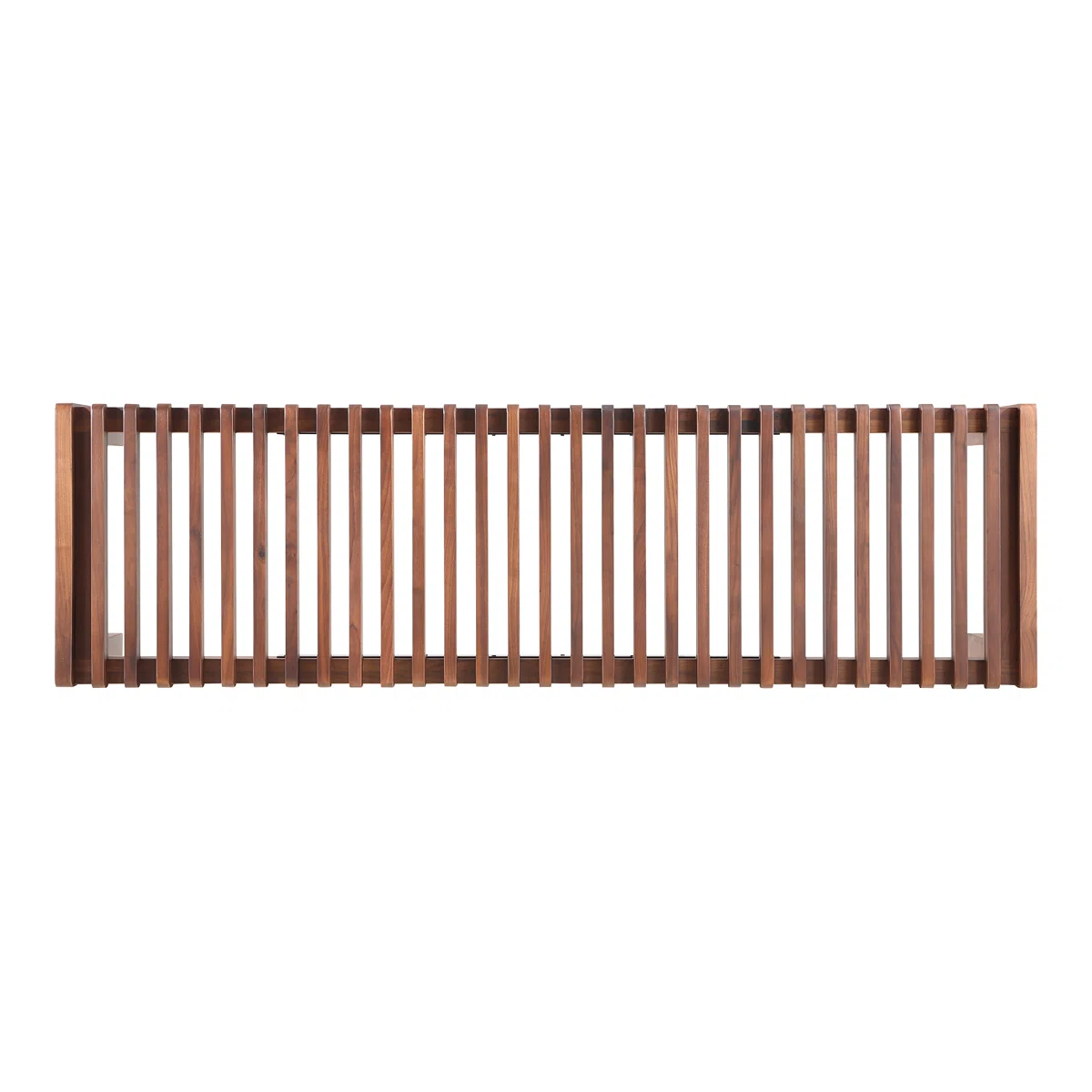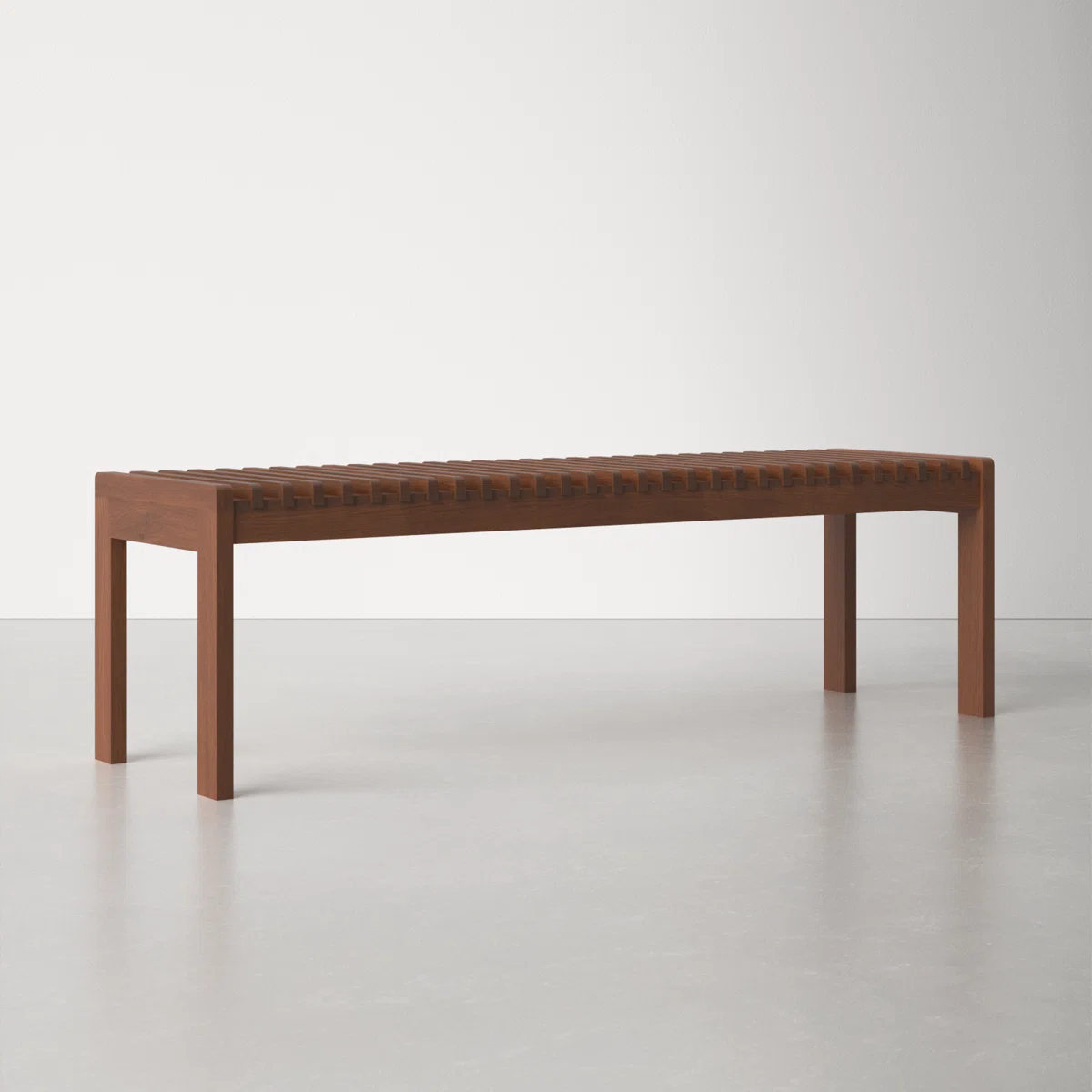Linear rhythm. This solid wood bench features a slatted top, adding subtle movement to its clean, minimalist form. The silhouette is long and low, offering a grounded presence without visual weight. Crafted entirely from solid wood, it brings warmth and durability. Use it in an entryway, at the dining table, or the foot of the bed. Quietly sculptural, endlessly functional.