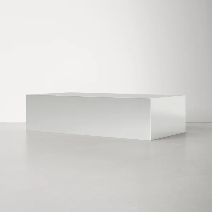 This coffee table has an understated style that’s sure to make a statement in your living room. The solid rectangular silhouette is made from MR MDF and is available in the metallic finish of your choice. Its box-like design makes a statement in its simplicity and provides plenty of space for your plants, books, and coffee mugs. This making it a great fit in modern living rooms with low-profile sofas. This coffee table arrives fully assembled.