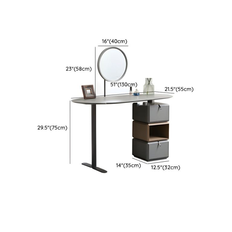 - Vanity Table: 51″ W × 21.5″ D × 29.53″ H