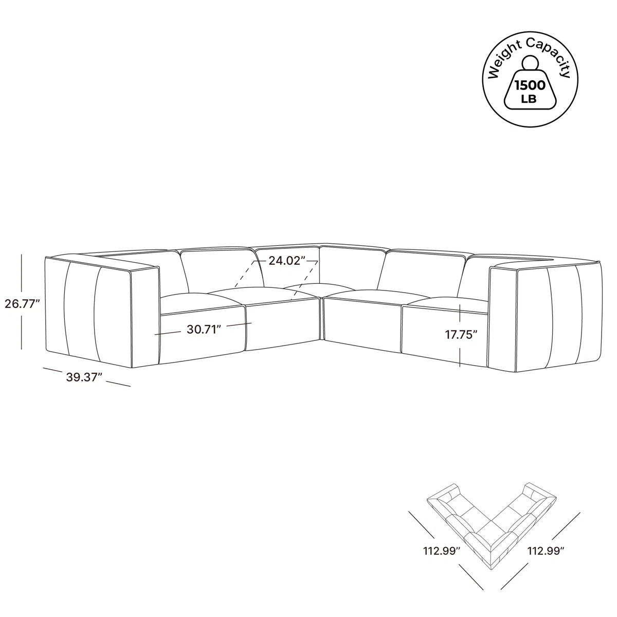 | Overall Dimensions | 26.8″ H × 111″ W × 118″ D | 68.07 cm H × 281.94 cm W × 299.72 cm D |