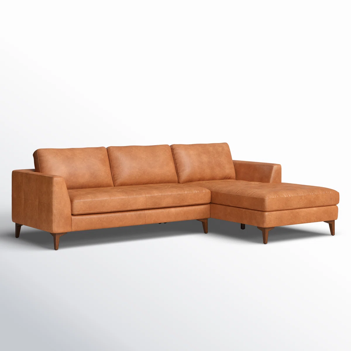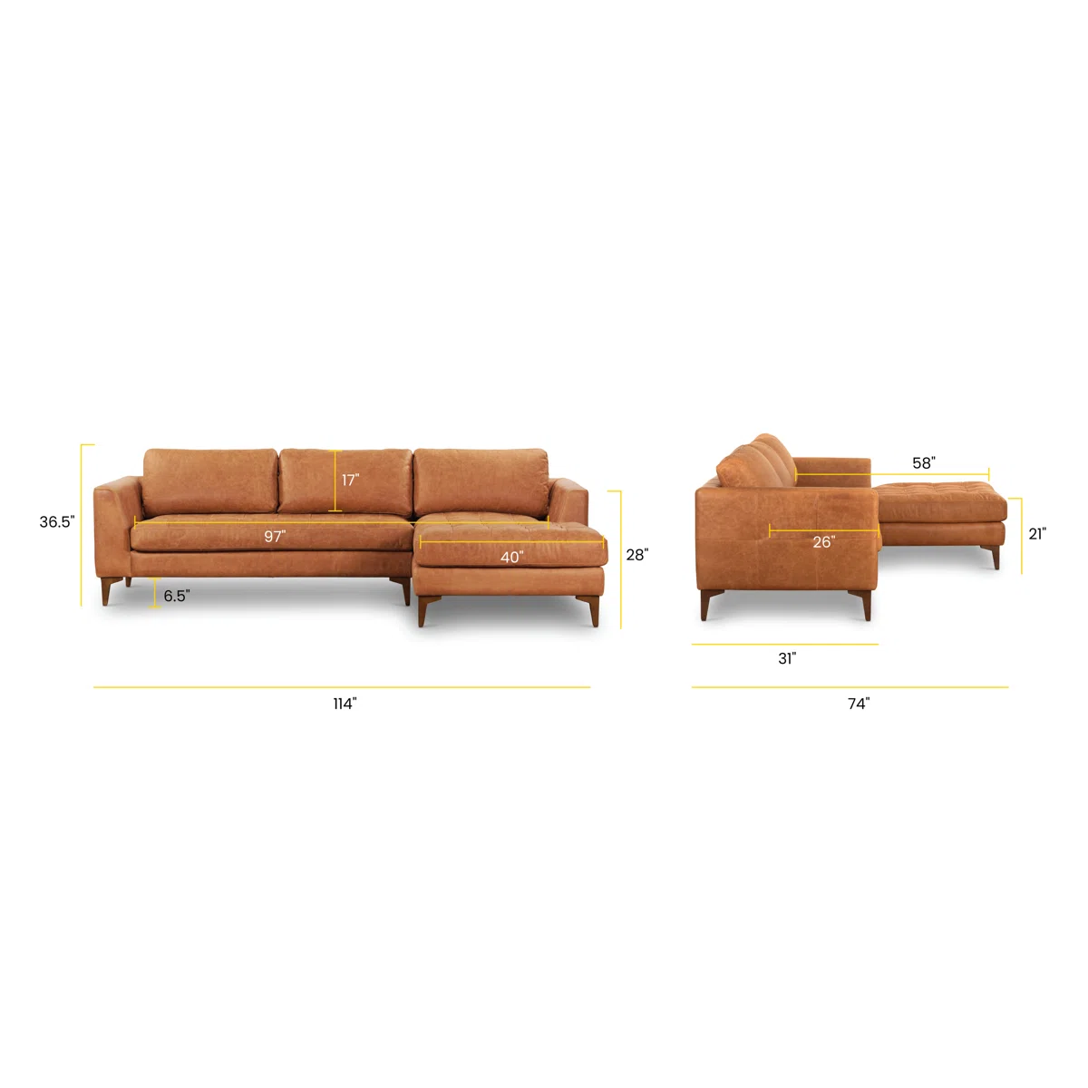 Pack the crew in for couples (or singles) date night and experience the cultured comfort this sectional sofa has to offer. Upholstered in premium artificial leather with a refined, matte finish, it offers the look of aged elegance without the upkeep. Designed to complement your personal style, this sofa is customizable with a range of leg options—from walnut to brass, silver, or black—ensuring the perfect match for your modern aesthetic.