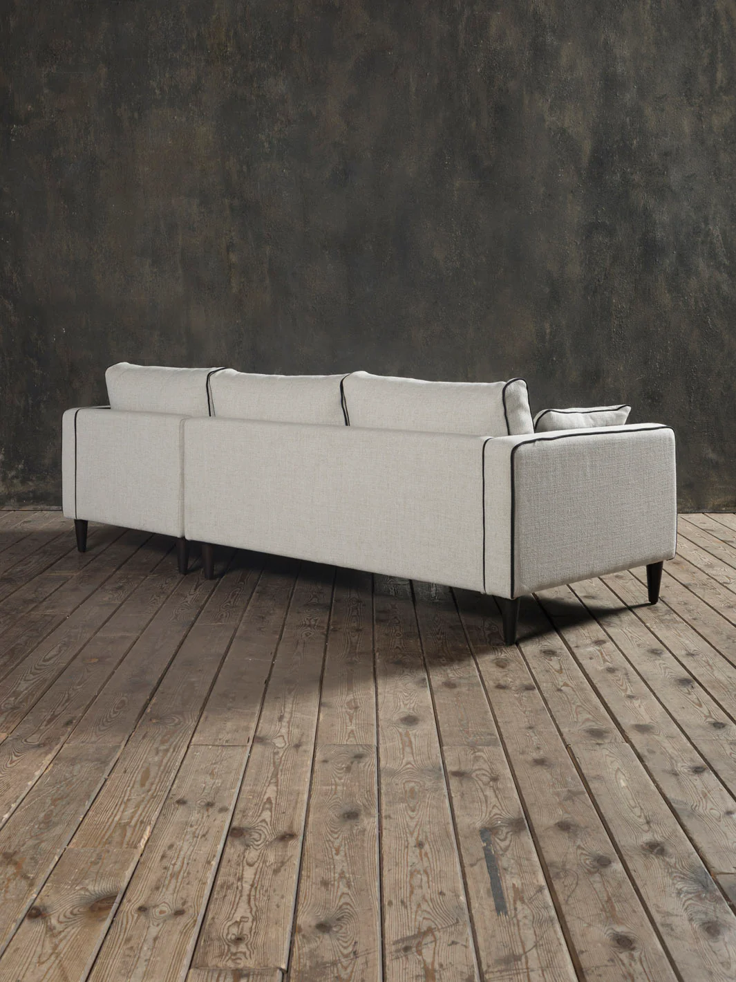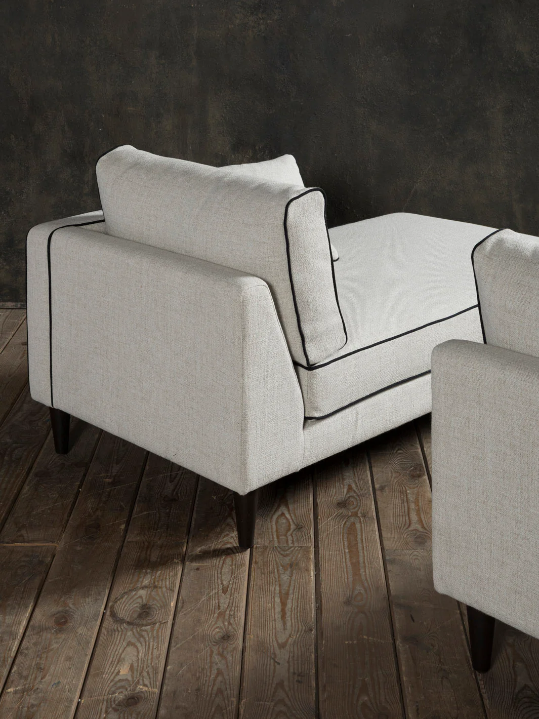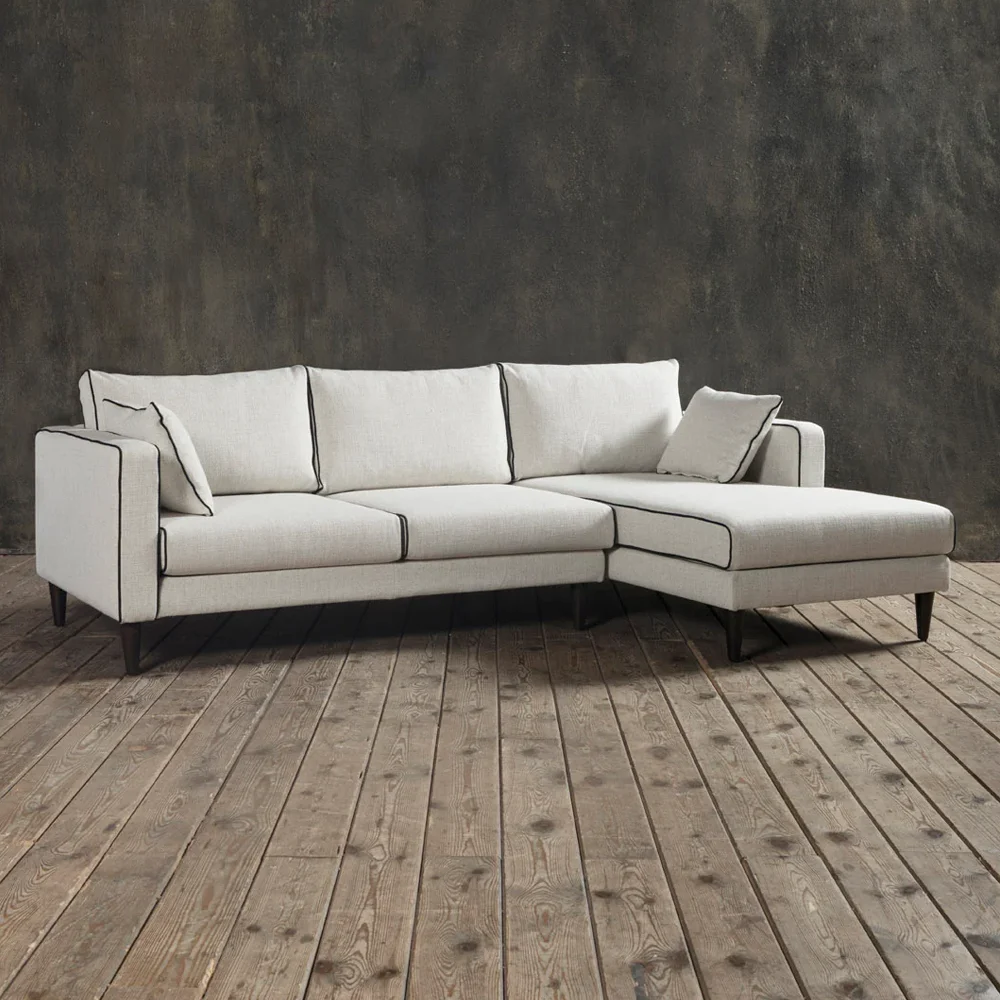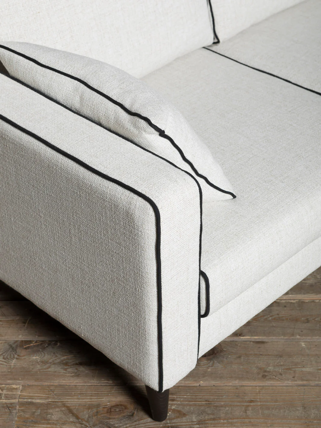 Elevate your interior with the Linéa Signature Sofa — a masterstroke of modern elegance. Inspired by iconic French design, this piece from our exclusive Linéa collection features bold contrasting trim that accentuates its clean lines and sculptural form. With generous proportions (230cm length, 75cm height, 90cm depth, and a 150cm deep chaise longue), it offers both comfort and sophistication, making it a timeless centerpiece for any refined living space.
