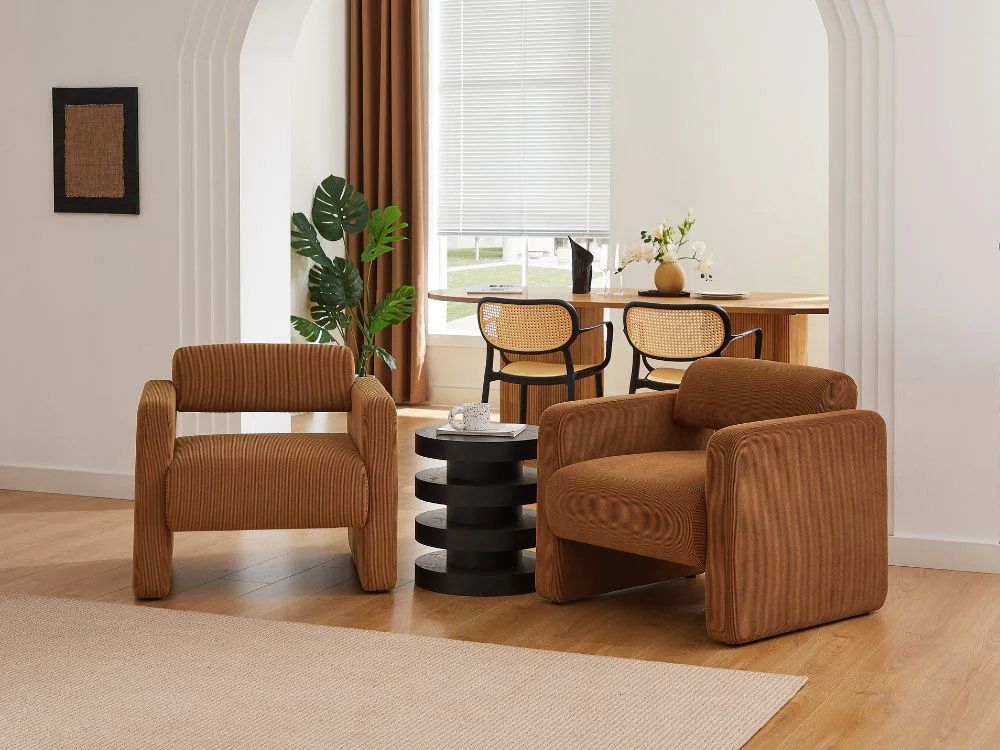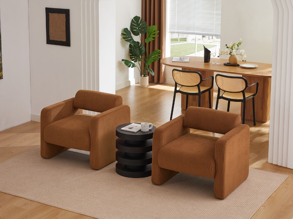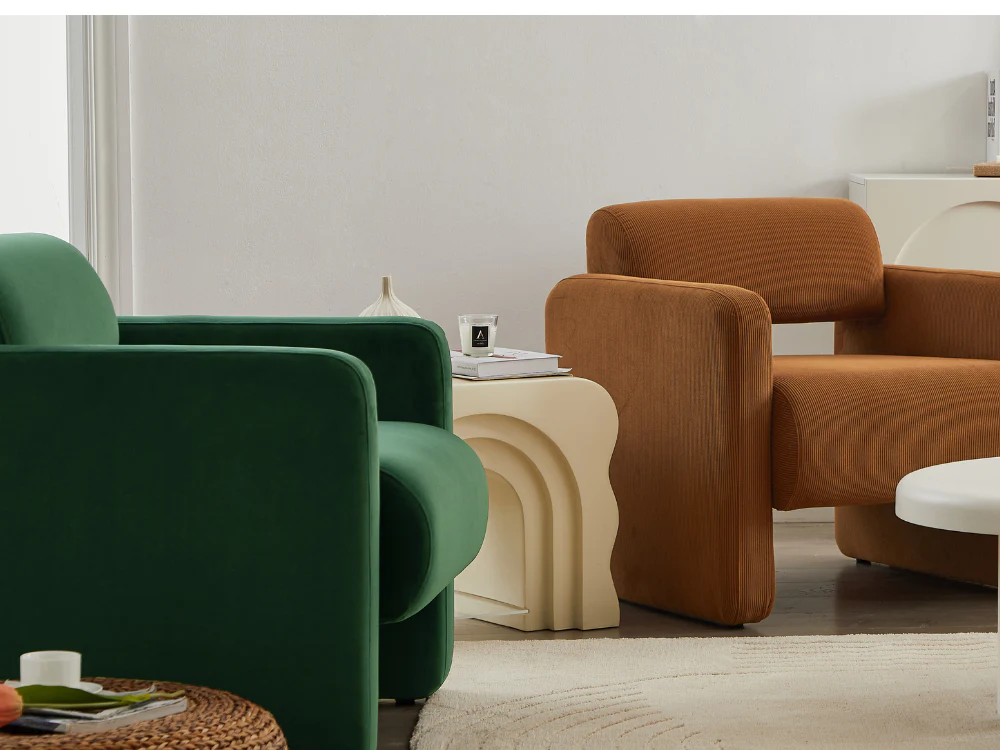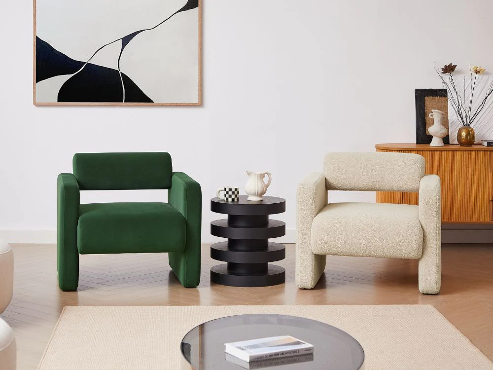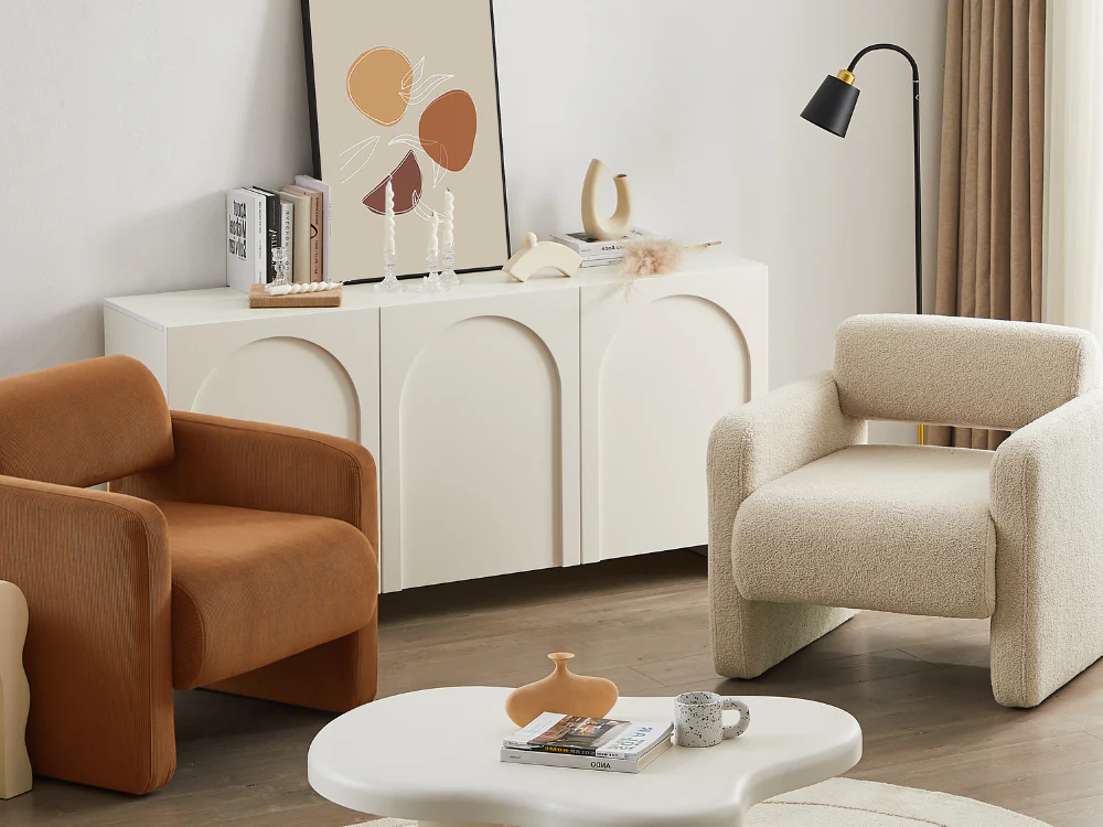Tactile Fabric"Featuring an extra soft boucle fabric, the Lorraine arm chair is so cozy that you may find yourself petting it each time you pass by. Trendy Colours" The Lorraine arm chair is available in four eye-catching colours to match your mood and your home decor. Whether you prefer versatile neutrals like white and cream or more adventurous hues like brown or green, you will find exactly what you are looking for.