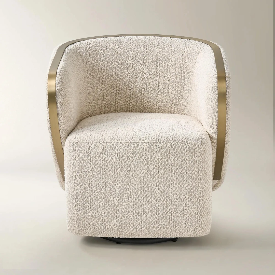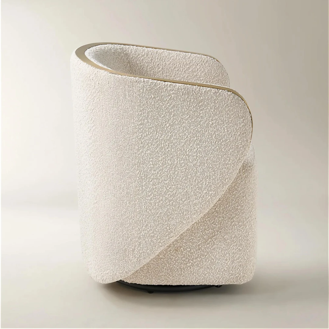 The Luna Crest Chair is a sculptural accent piece that blends plush comfort with refined elegance. Upholstered in a soft cream fabric and framed by a graceful curved back, it’s designed to elevate living rooms, reading nooks, or boutique lounges. A subtle gold trim adds a touch of luxury, making it a standout in any modern interior.