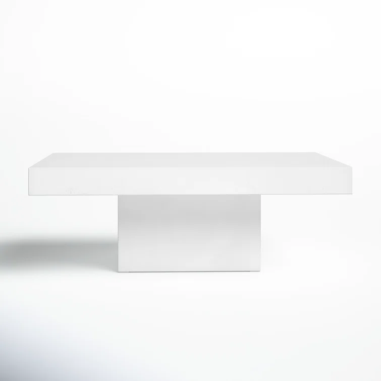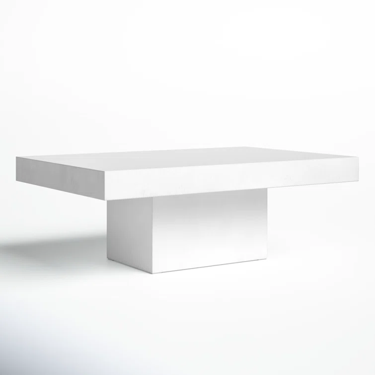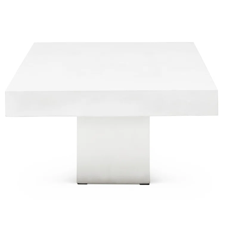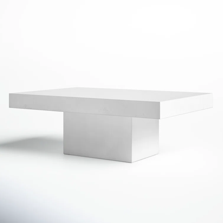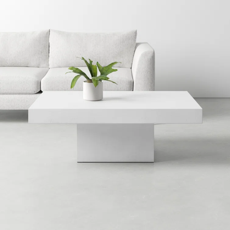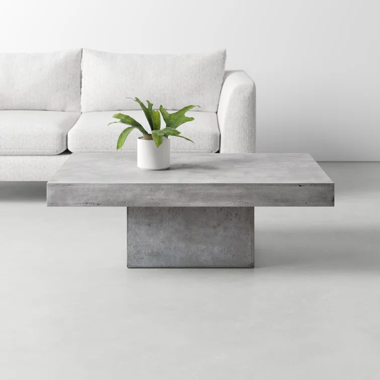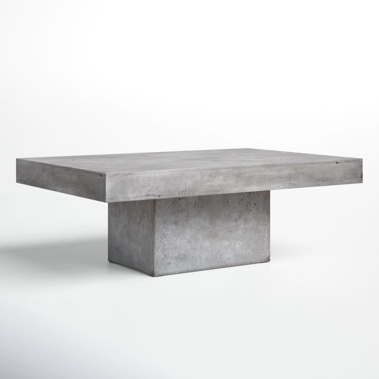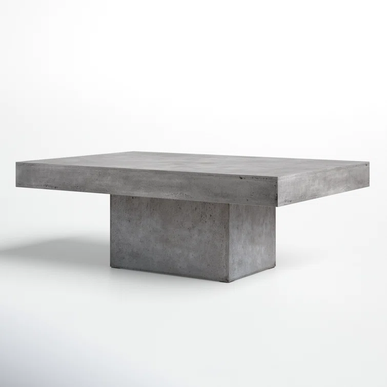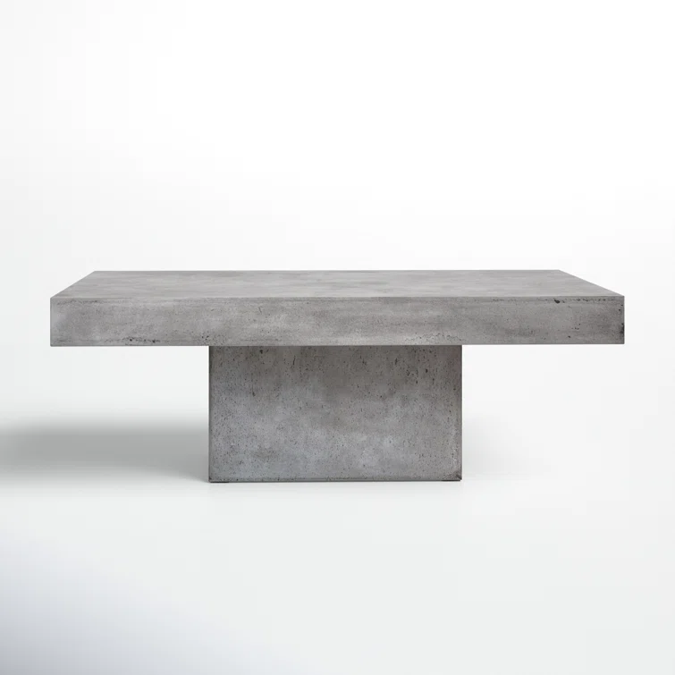 It’s hip to be square! This understated coffee table turns your living room from drab to fab, just like that. It’s crafted from concrete paint for an eye-catching and industrial look. A blocky base is topped off with a thick rectangular tabletop in a rustic dark grey or ivory hue. Finished on all sides for versatile placement, this coffee table is sure to be the center of attention in your home.