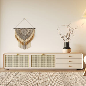The MAR TV Stand, a lovely TV stand, harmoniously melds functionality and aesthetics. Crafted from durable MDF, this wooden TV stand is not just a practical piece of furniture, but also a charming addition to your home. Its wood accents radiate a natural allure that enhances your living space