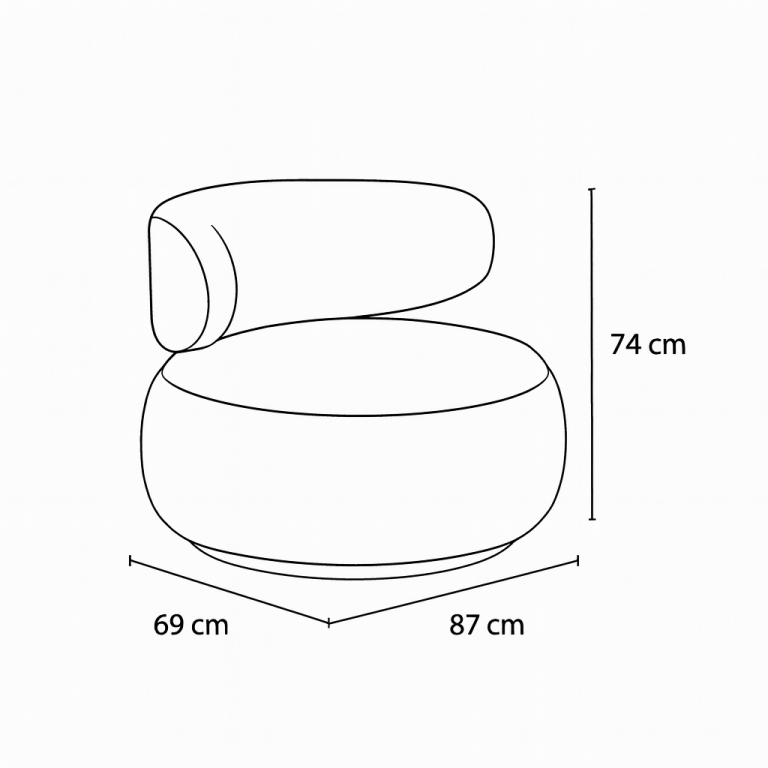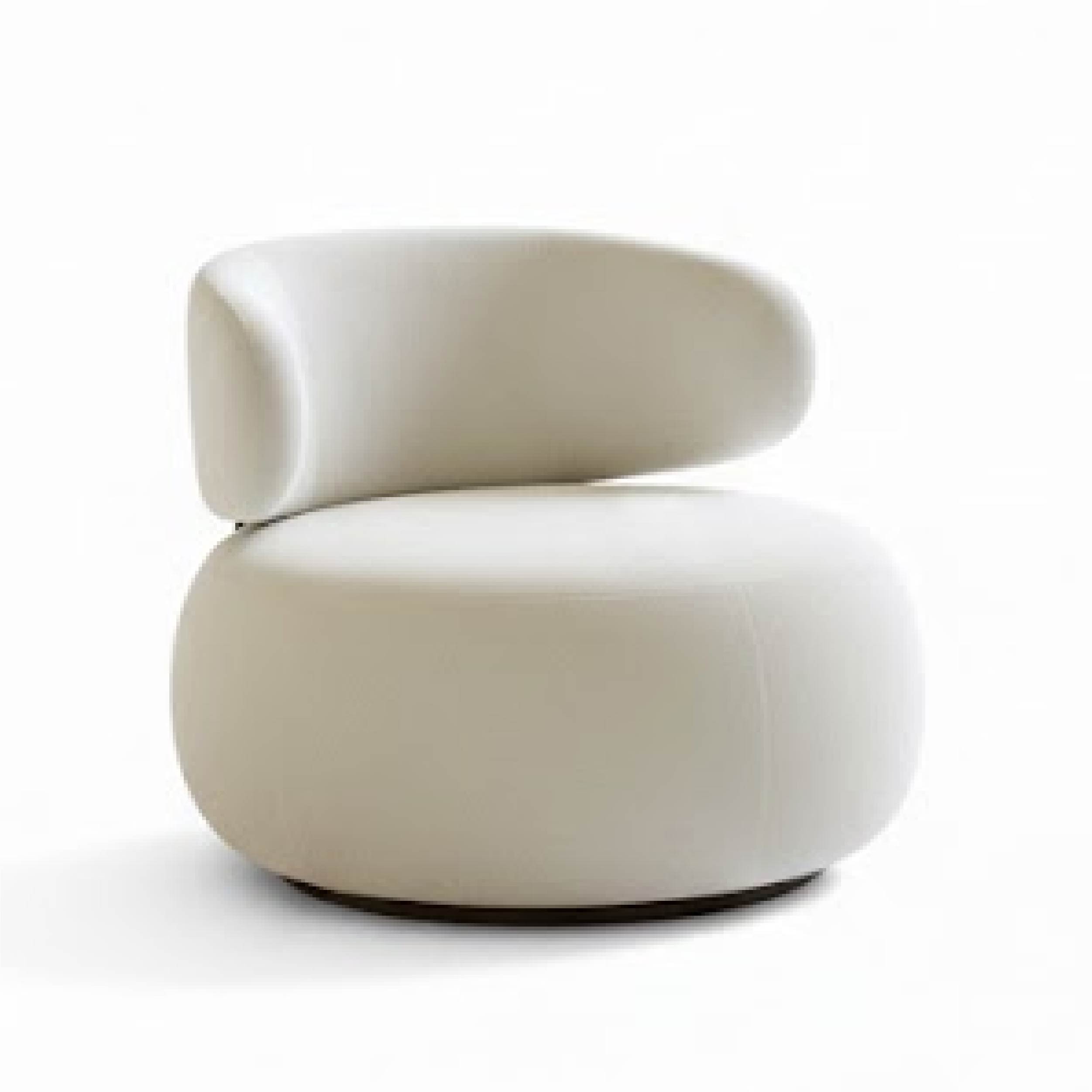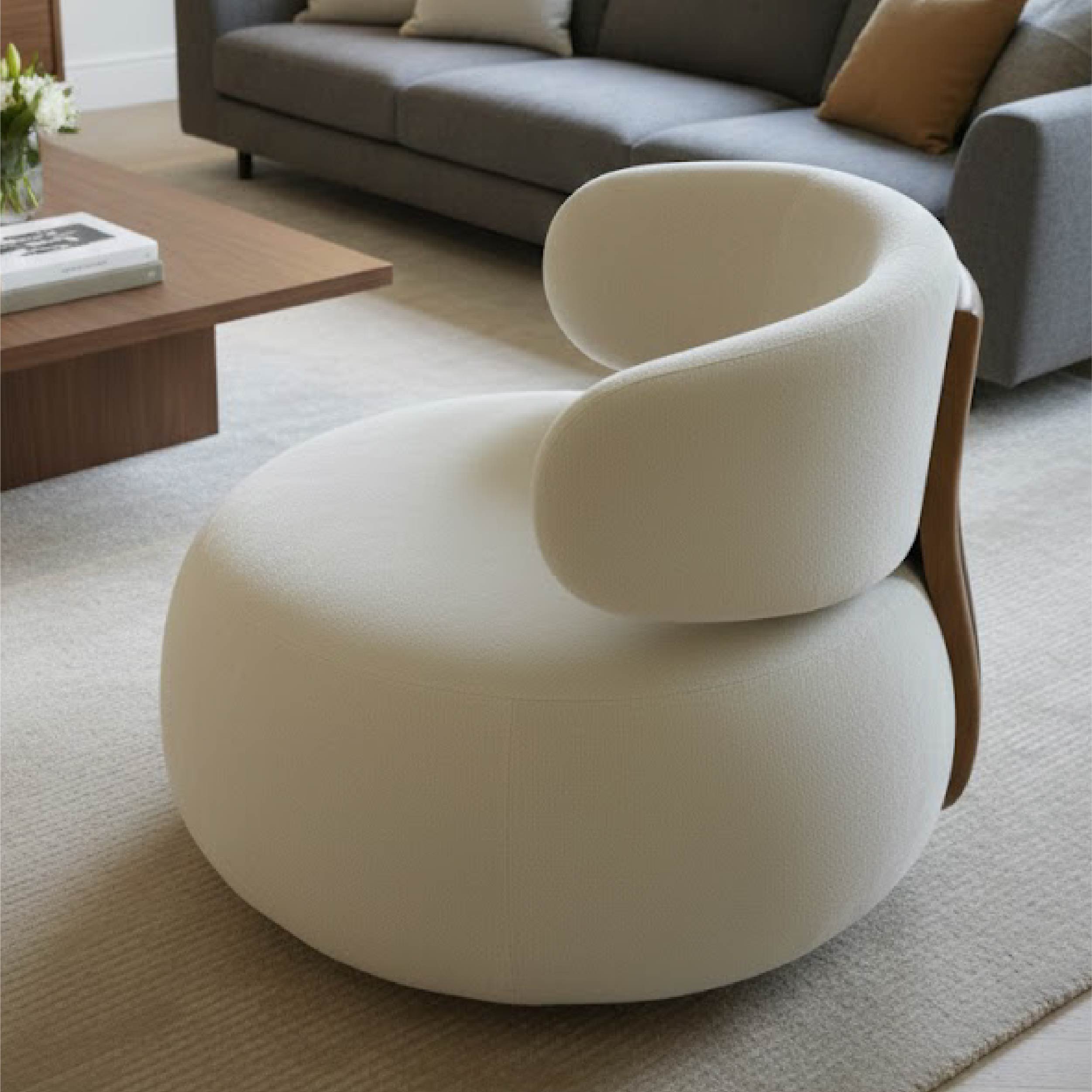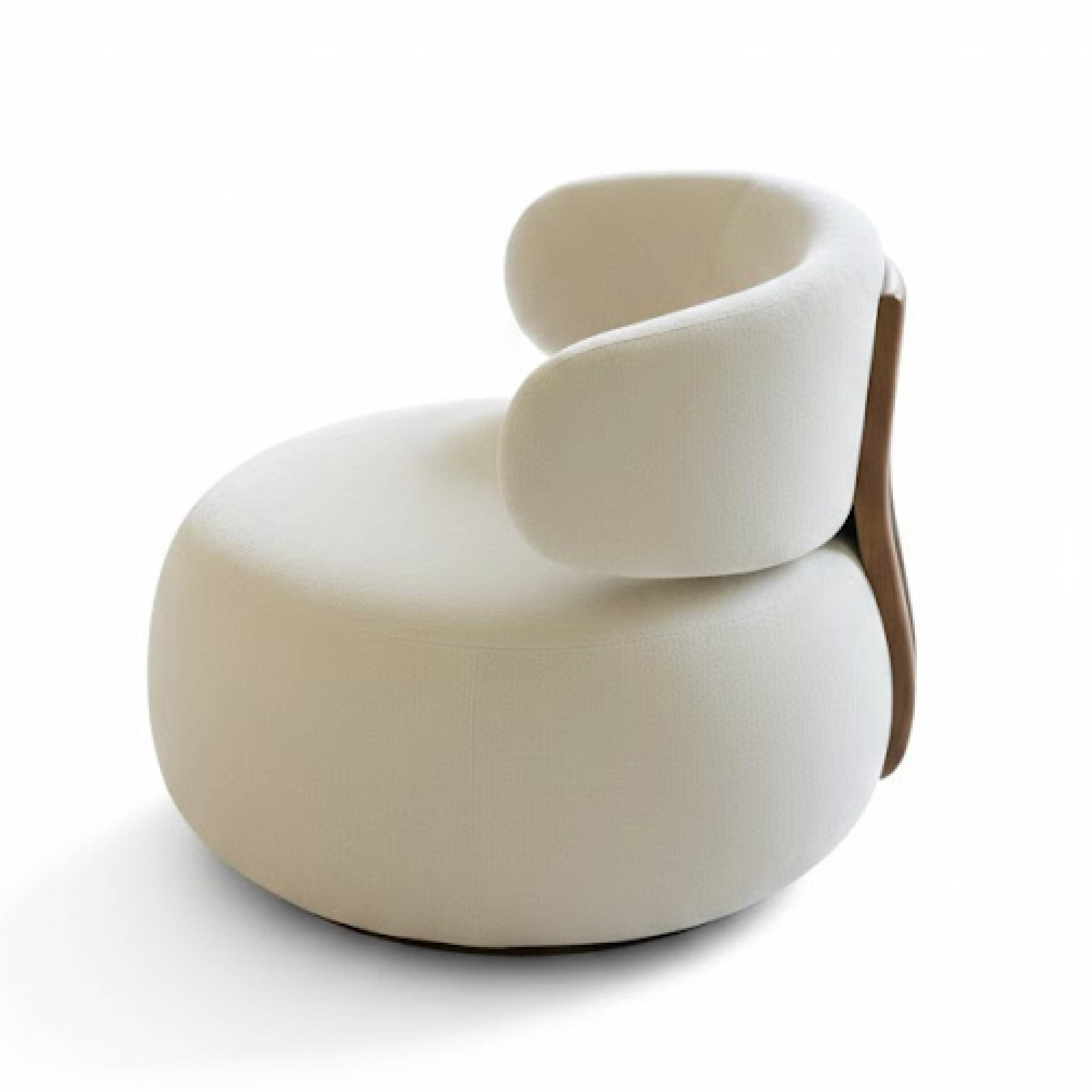 This chair features a rounded cushioned seat and a curved backrest that gently wraps around for ergonomic support. Its minimalist silhouette and soft upholstery make it a stylish addition to living rooms, lounges, or boutique hospitality spaces.
