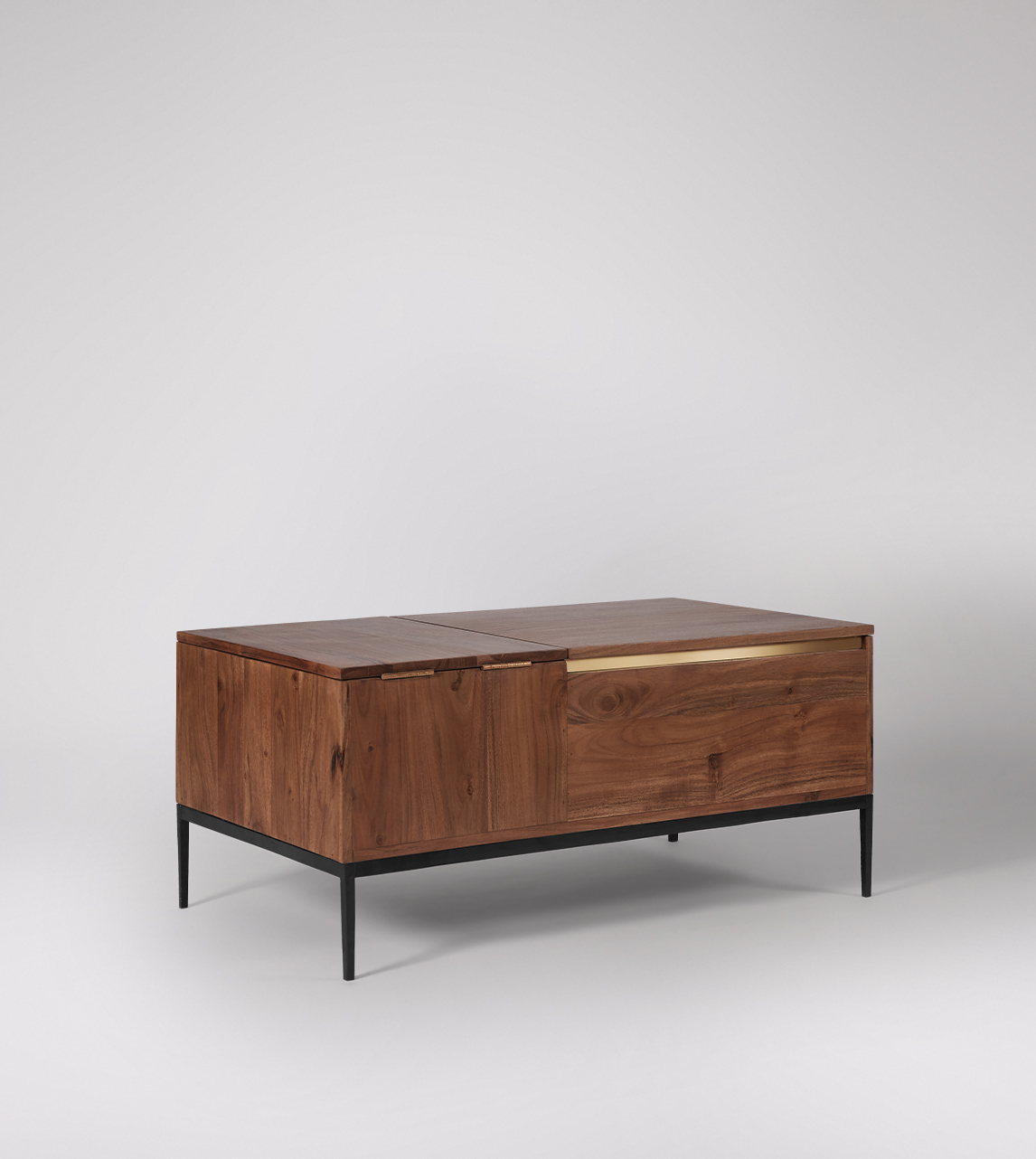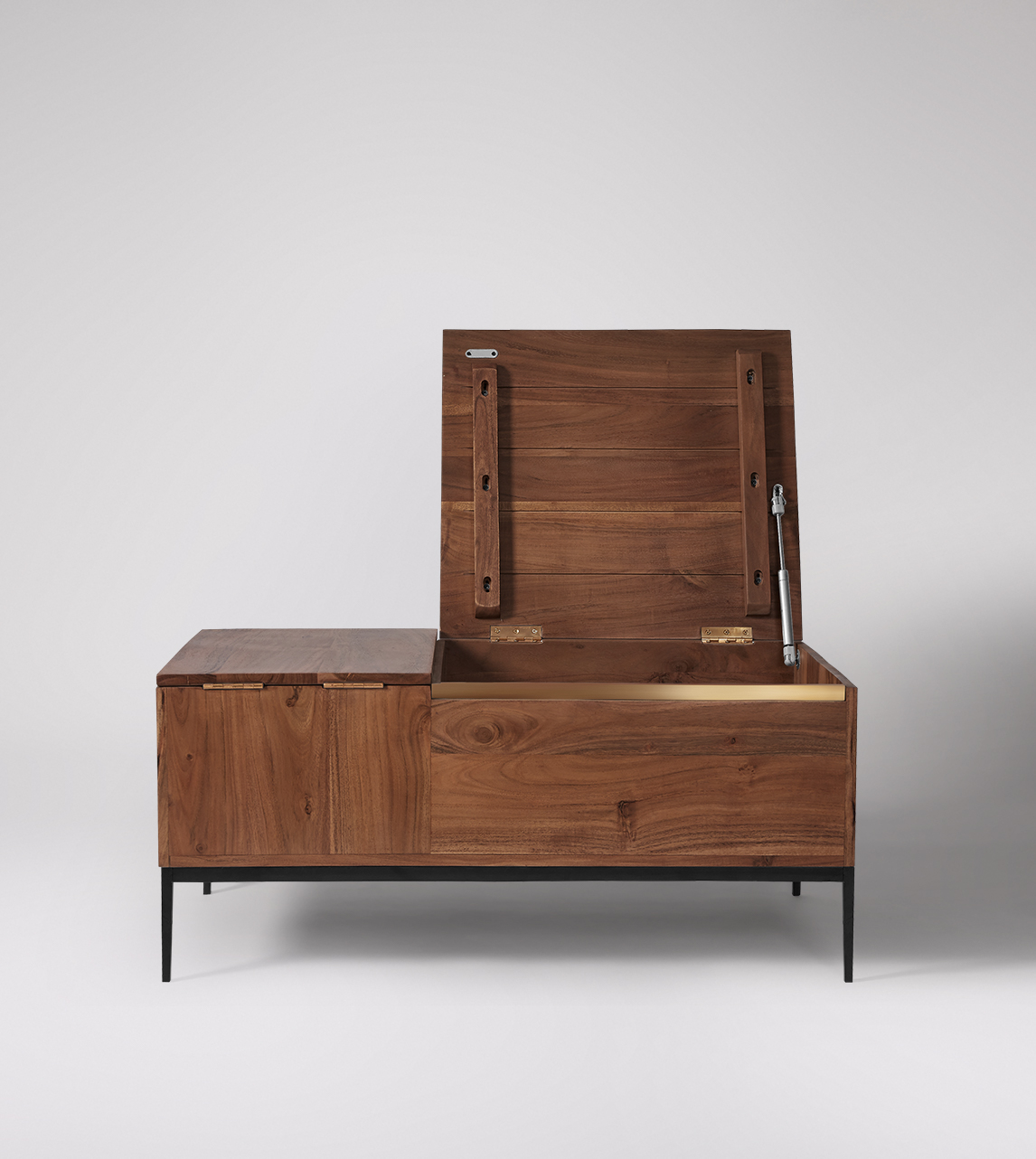 A two-way opening tabletop and contrasting grain patterns to mark out the different compartments mean it is as practical as it is beautiful.