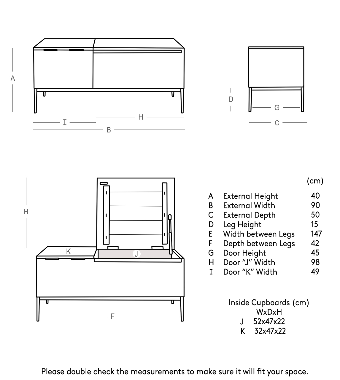 - Dimensions: W: 90 cm D: 50 cm H: 40 cm