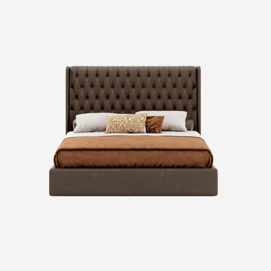 The Night Dream Bed blends traditional charm with modern hospitality design. Fully upholstered in faux leather, its extra-large headboard adds bold sophistication to residential suites and upscale hotel interiors. With generous proportions and a timeless silhouette, it’s built for comfort, durability, and visual impact.