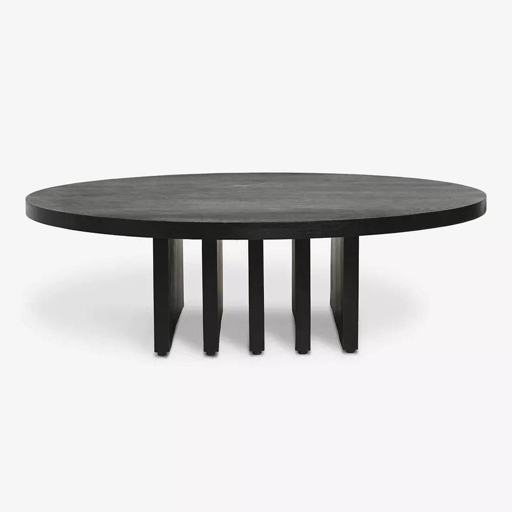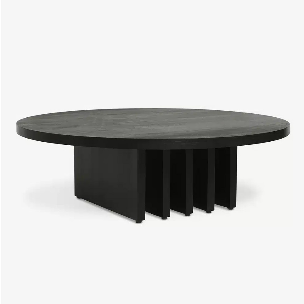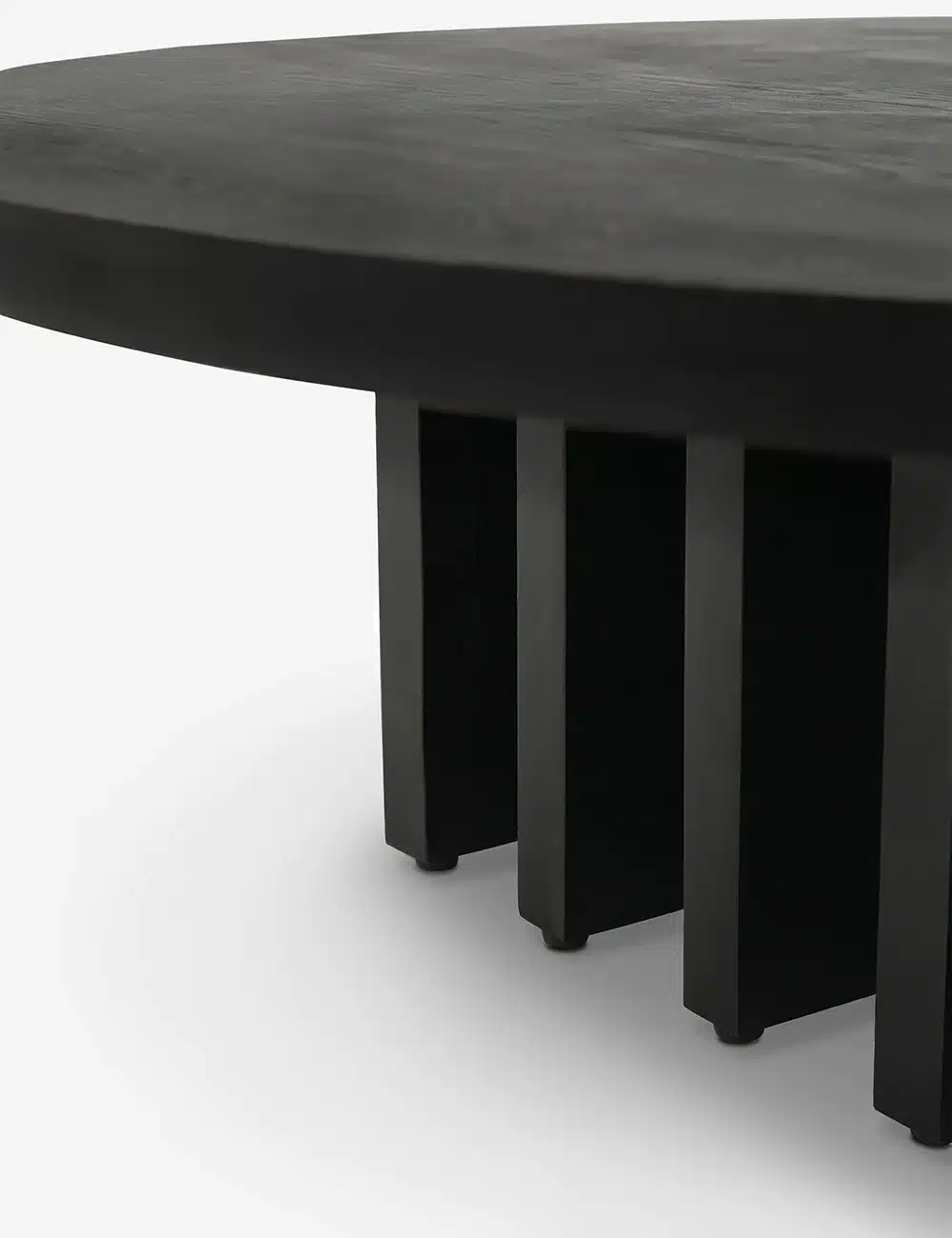 Elevate your living space with a wood coffee table design that pairs a sculptural silhouette with a natural grain texture. Featuring a spacious tabletop and a row of thick slab-style legs, this coffee table is a striking centerpiece for your living room. This piece is from our exclusive Sarah Sherman Samuel collaboration and features all the trademarks of her warm, edited style