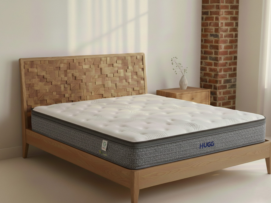 The Hugg Latex + Memory Foam Mattress blends natural latex with adaptive memory foam to create a balanced and refreshing sleep experience. Because latex offers natural bounce and breathability, the mattress feels lively and cool from the moment you lie down. At the same time, the memory foam layer gently follows the shape of your body, which helps reduce pressure on your shoulders, hips, and lower back. This combination makes the mattress ideal for sleepers who want both comfort and support in one design.