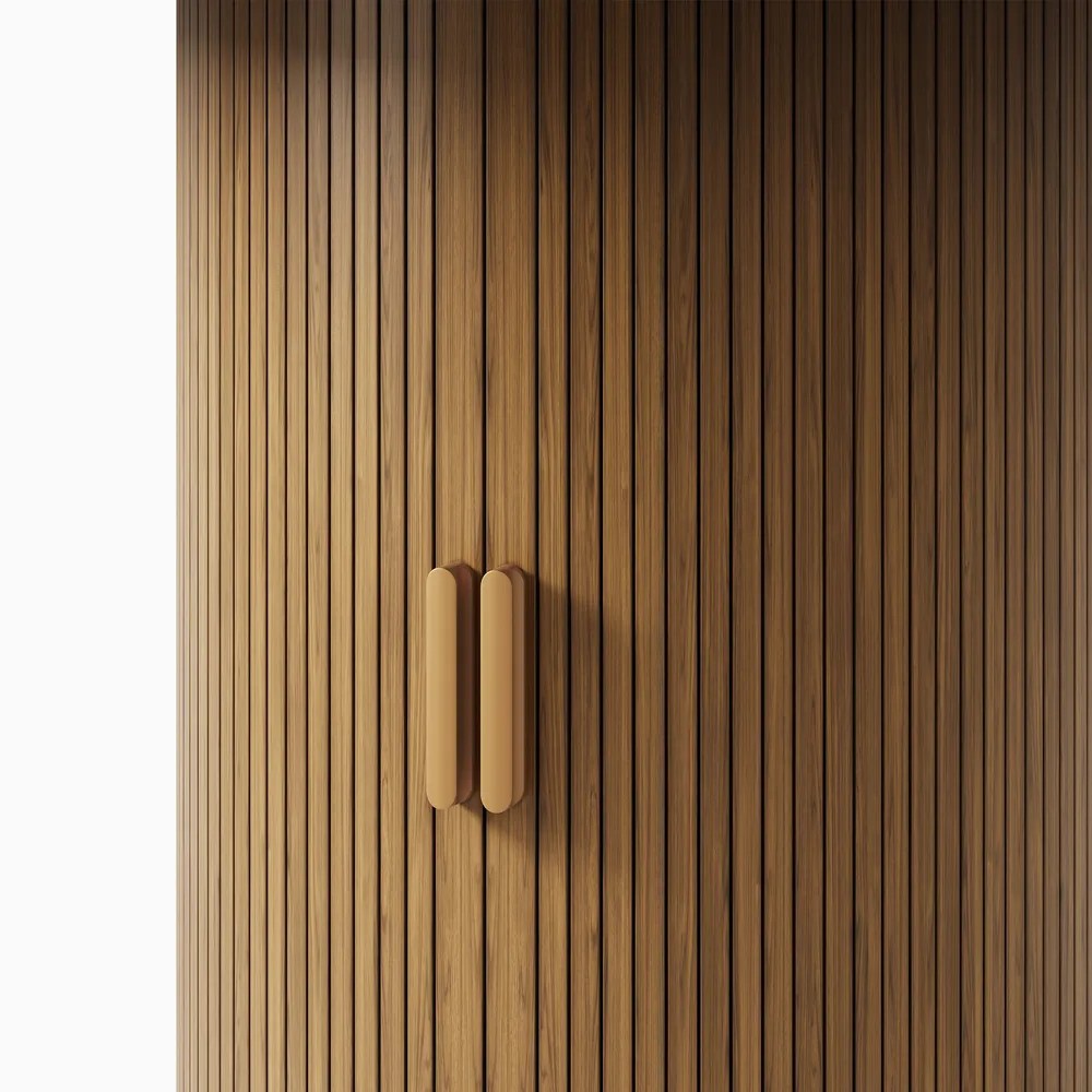 • Tambour doors offer a modern, space-saving solution with clean lines
