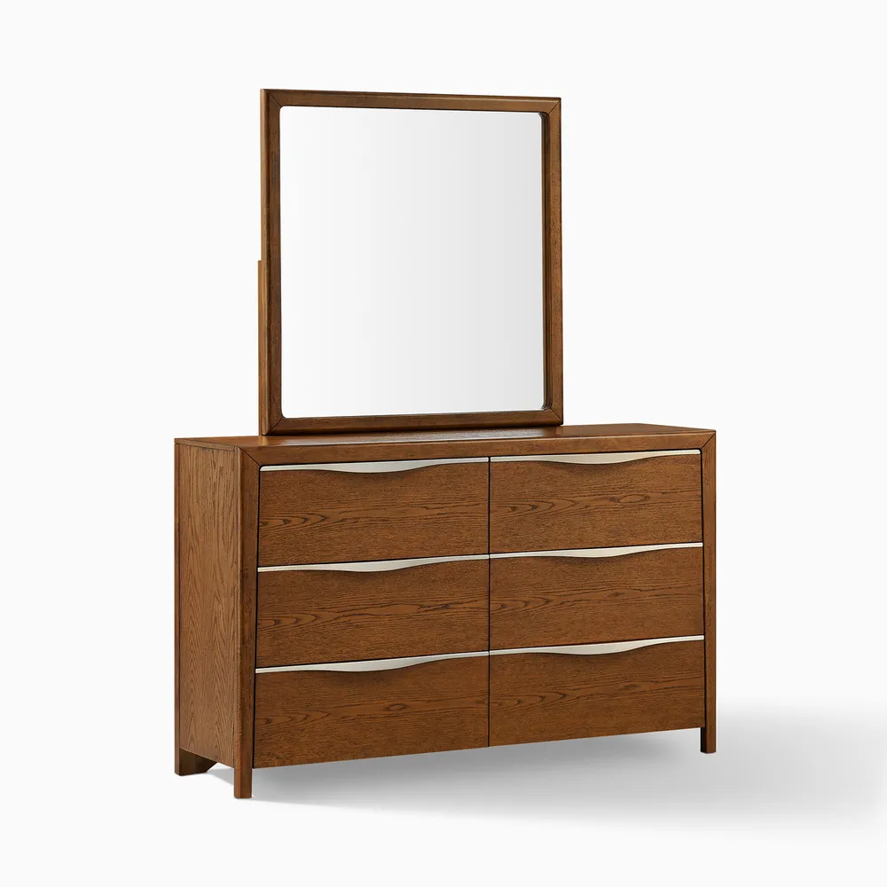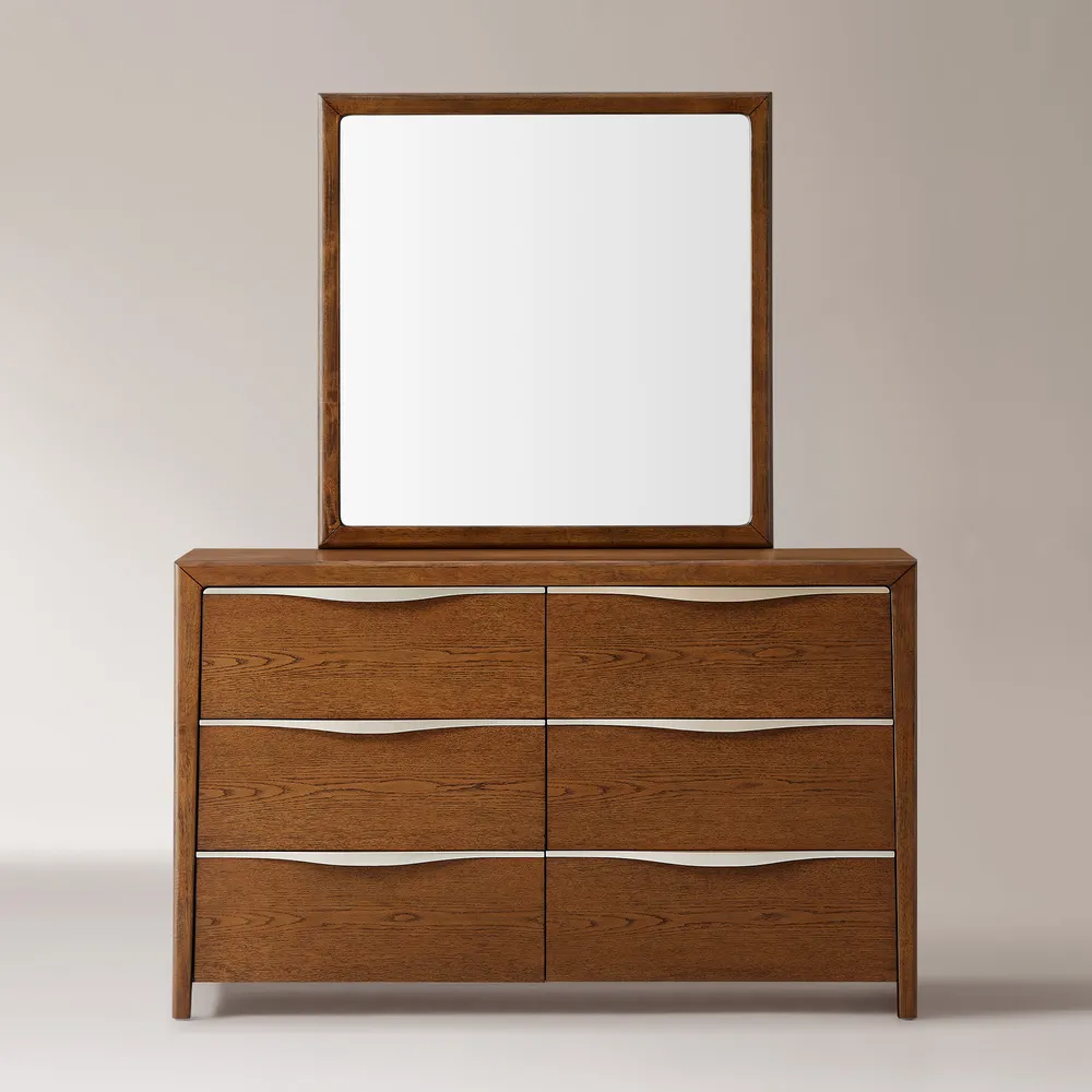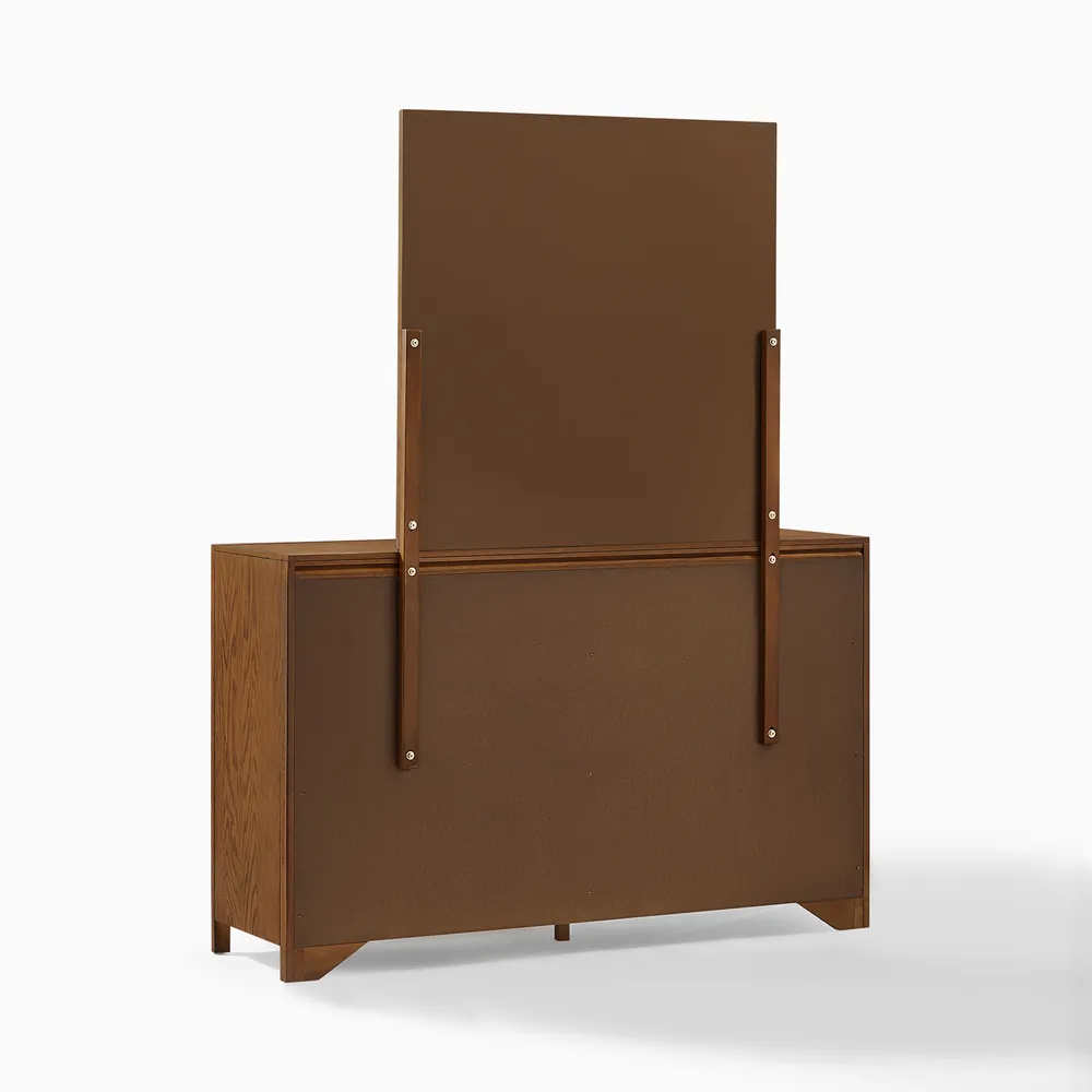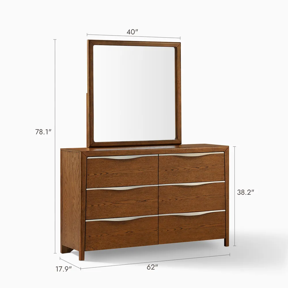 A masterful blend of modern sophistication and vintage maximalist allure, this bedroom ensemble is designed to captivate. Crafted from rich oak veneers over a solid wood and engineered wood frame, it offers enduring durability and timeless appeal.