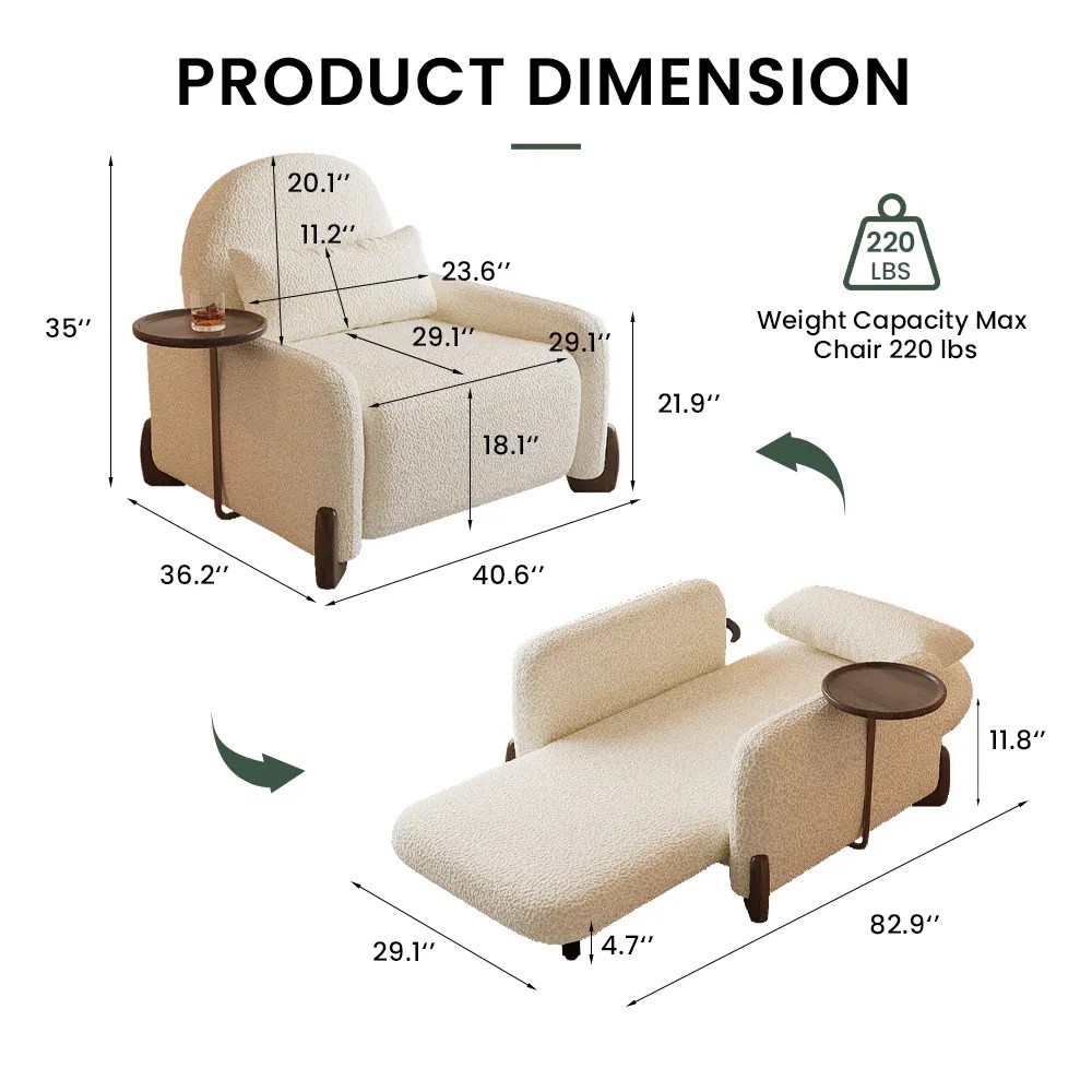 Crafted with soft fabric in a refined walnut and white finish, this piece blends comfort with versatility. Designed to support up to 220 lbs, it offers a cozy seating option for one while easily transforming into a bed when needed. Its compact build makes it an excellent choice for small spaces, guest rooms, or multifunctional living areas, combining style with everyday practicality.