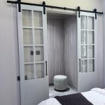 “Taupe geometric herringbone barn doors just invented closet drama.”